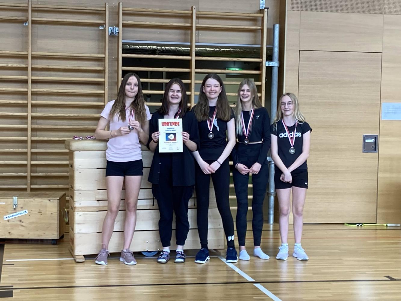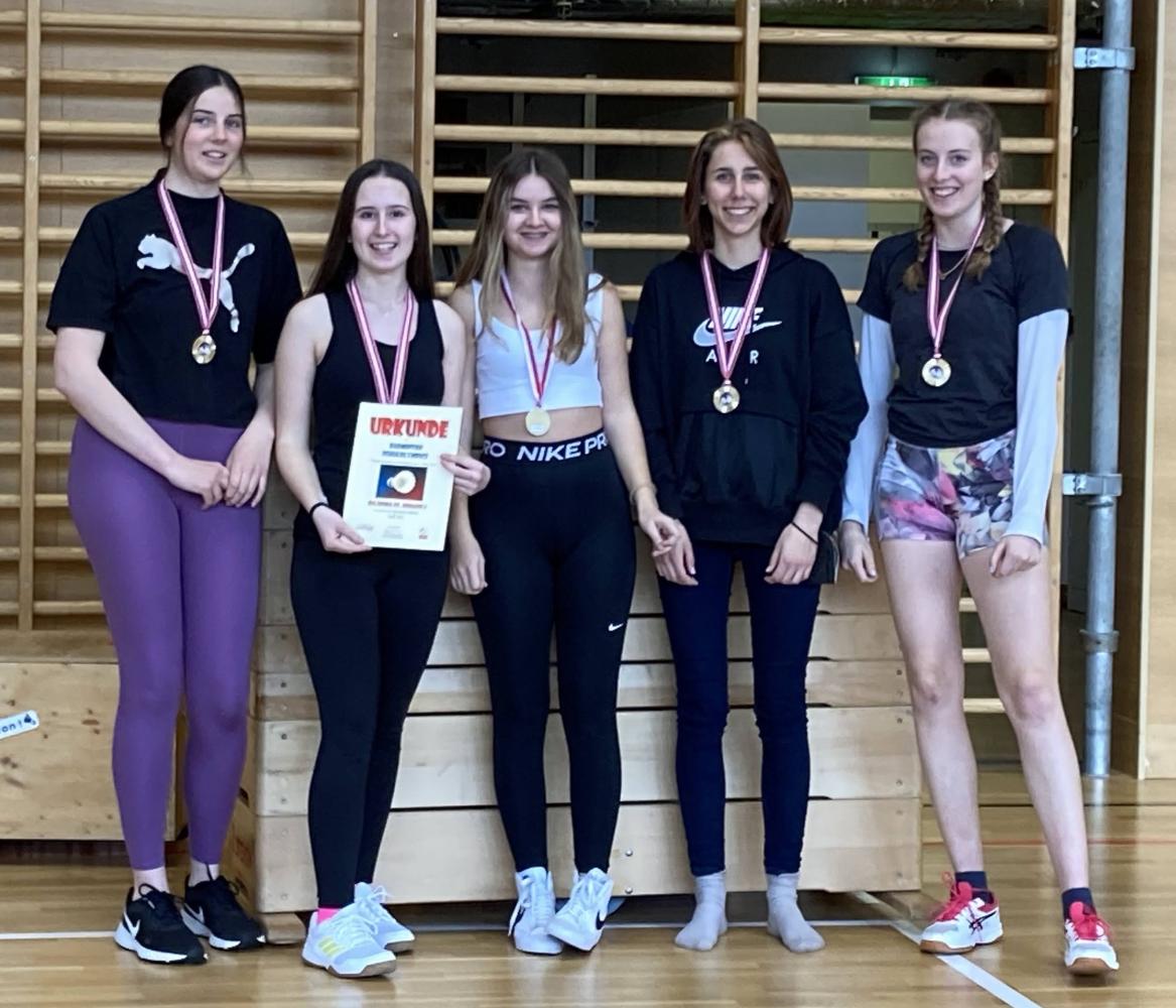 Besonders erfreulich war, dass wir Im Bewerb Oberstufe weiblich zum ersten Mal seit langem den Turniersieg nach Hause holen konnten. Die Mädchen (Prosch Annamaria, Fankhauser Elisabeth, Mitteregger Vivienne, Pfluger Christina, Mallaun Lucia) nahmen die Goldmedaille natürlich mit einem strahlenden Lächeln in Empfang.