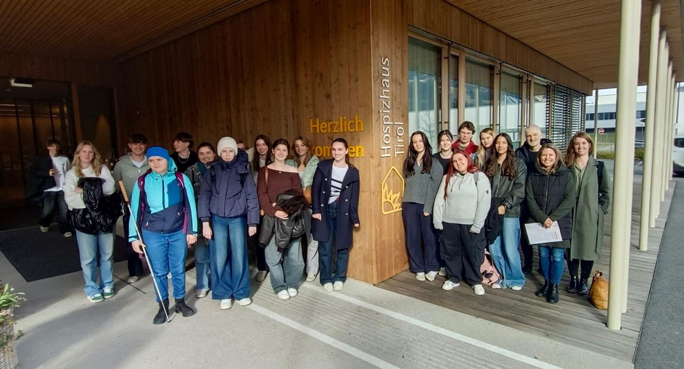 Im Rahmen des Religions- und Ethikunterrichts besuchten die Schüler*innen der 7a und 7d am 10. März das Tiroler Hospiz-Haus in Hall in Tirol. In einem Vortrag und einer anschließenden Führung durch das Haus konnten sich die Schüler*innen selbst einen Eindruck eines Hospizes machen. Dabei wurde deutlich, dass ein Hospiz zwar ein Ort für schwerkranke und sterbende Menschen sowie deren Angehörige ist, jedoch trotz fehlender Heilungschancen viel getan werden kann, um Leiden zu lindern und ein möglichst erfülltes und beschwerdefreies Leben bis zuletzt zu ermöglichen.