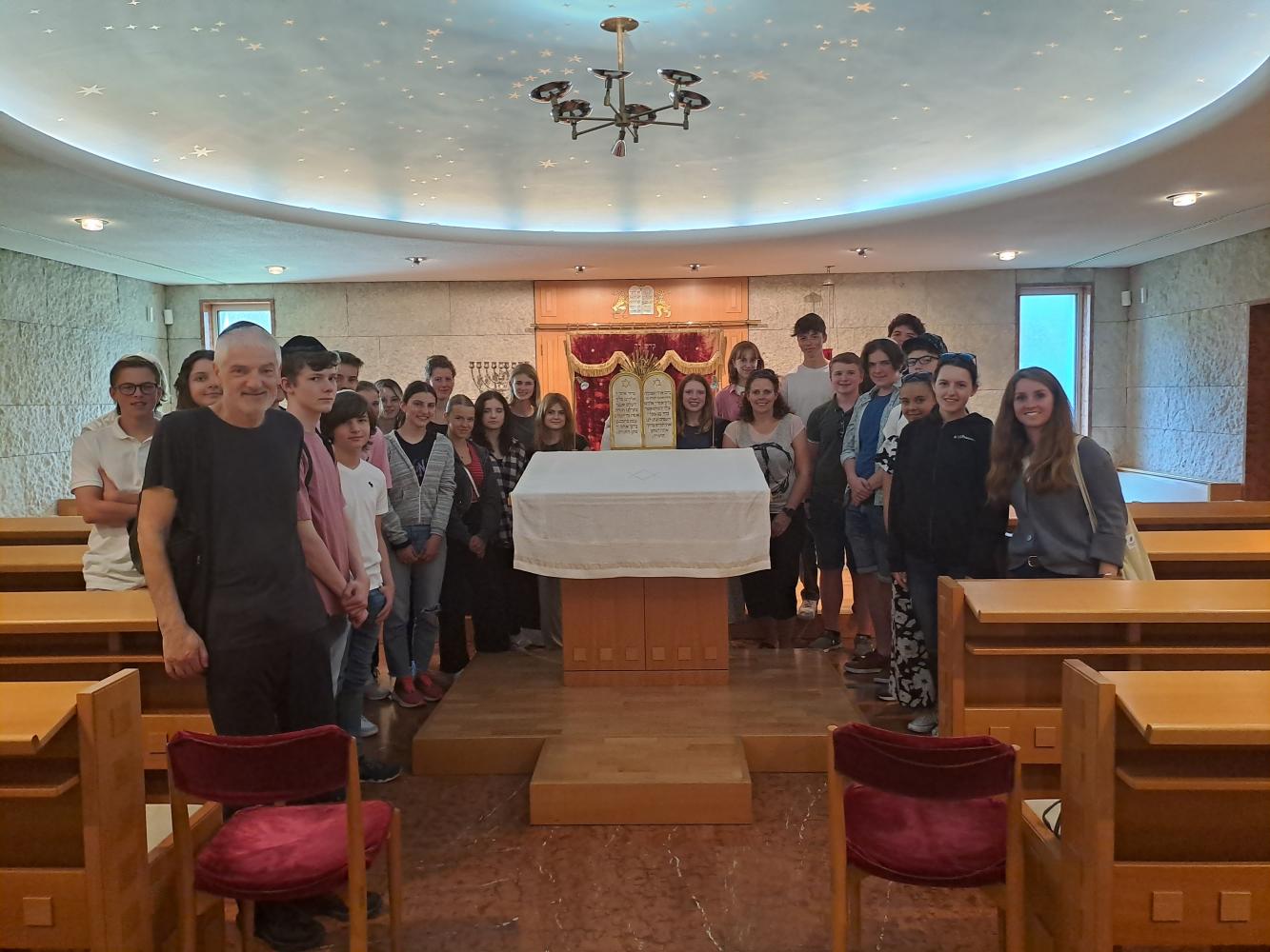 Im Rahmen des Ethik- und Religionsunterrichts statteten die Klassen 6A und 6C am 20. Juni 2023 der Synagoge der israelitischen Kultusgemeinde in Innsbruck einen Besuch ab. Auf dem Weg dorthin wurde das Progrom-Denkmal besichtigt und dessen Geschichte anhand der Präsentation zweier Schüler vorgestellt.