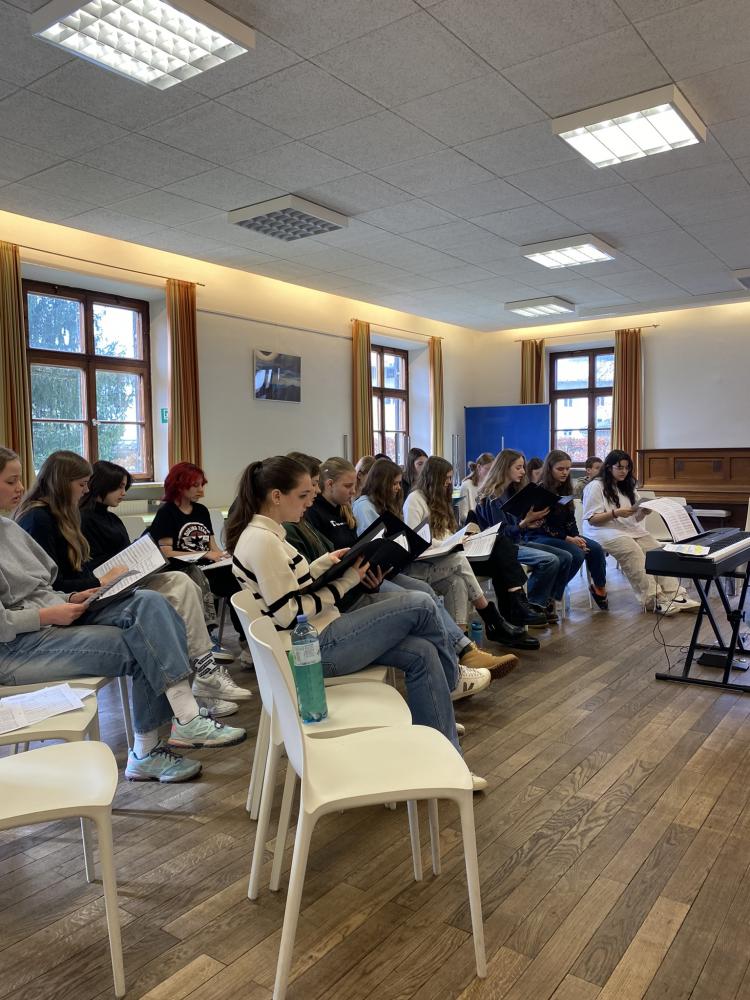 Der Oberstufenchor „Chorios“ nutzte einen zweitägigen Aufenthalt in Berchtesgaden, um sich auf Auftritte im Sommersemester, darunter v.a. das Spazierkonzert des Musikzweigs am 28. Mai 2024, vorzubereiten. Mit ihren Fachlehrpersonen arbeiteten die Schüler*innen intensiv und konzentriert an neuen Stücken, vertieften in Theorie und Praxis ihr Wissen zur Stimmbildung und wuchsen als Chorgemeinschaft weiter zusammen. Programm für das Sommersemester sind Teile aus verschiedenen Messkompositionen, die sämtliche Stile (Jazz, Pop, Gospel, Klassik, Volksmusik) abbilden.