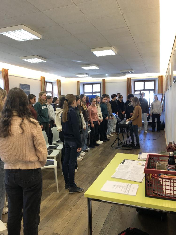 Der Oberstufenchor „Chorios“ nutzte einen zweitägigen Aufenthalt in Berchtesgaden, um sich auf das Landesjugendsingen in Schwaz Ende April vorzubereiten. Mit ihren Fachlehrpersonen arbeiteten die Schüler*innen intensiv an neuen Stücken, vertieften in Theorie und Praxis ihr Wissen zur Stimmbildung und wuchsen als Chorgemeinschaft weiter zusammen. Das abendliche Bowling-Turnier zwischen den fünf Schwerpunkt-Gruppen (Klavier, Gesang, Gitarre, Tanz und Querflöte) konnten die Sängerinnen für sich entscheiden. Neben der Professionalisierung ihrer musikalischen Kompetenzen luden die Schüler*innen in dieser kurzen Auszeit vom Schulalltag auch gleichzeitig ihre Akkus für die schulischen Herausforderungen des Sommersemesters auf.
