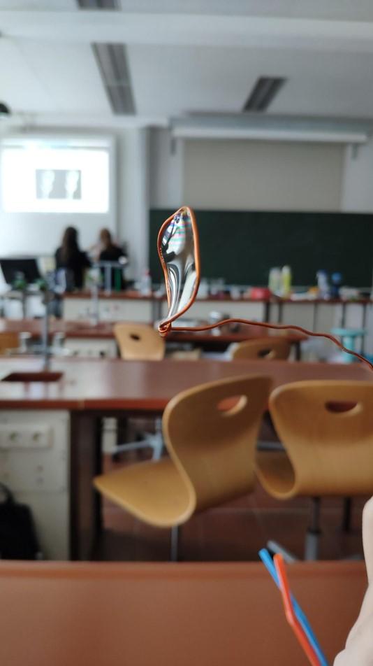 Montagnachmittag, der 17.1.2022, wurde der Chemiesaal mit reichlich Seifenblasen gefüllt. Grund dafür waren die von Frau Graz, Assistenz-Professorin der Uni Linz, angeleiteten Versuche. Sie trug der 7c Klasse im Online-Workshop vor, wie Seifenblasen entstehen und erklärte weitere theoretische Tatsachen zu ihnen. Als erstes bauten wir aus zwei Joghurtdeckeln und einem zerschnittenen Strohhalm ein Konstrukt. Dieses tauchten wir am Ende in Seifenlösung. Dadurch konnte gezeigt werden, dass sich Seifenblasen immer den kürzesten Weg suchen. Das heißt, Seifenblasen können mathematische Probleme lösen. Danach ging sie auf die Theorie der Seifenblase ein und erklärte, wie sie entstehen. Darauf folgten die Experimente. Mit einem Strohhalm versuchten wir die Seifenblasen so groß wie möglich zu machen. Dabei konnte man erkennen, dass sobald sich ein Tropfen unten an der Blase gebildet hatte oder sie berührt wurde, die Oberflächenspannung zerstört wurde und der Seifentraum zerplatzte. Des Weiteren konnten wir mehrere Seifenblasen ineinander aufblasen oder diese auf unseren Händen halten. Dabei musste man darauf achten, dass die Fläche, auf der die Blase landen sollte, ebenfalls mit Seifenlösung bedeckt war. Im Großen und Ganzen haben wir in den zwei Stunden des Workshops einiges über Seifenblasen und ihre Beschaffenheiten beziehungsweise ihre Eigenschaften und Besonderheiten gelernt. Zusätzlich haben wir die Tische des Chemiesaals, durch das Ausbreiten der Seifenlösung drauf, ordentlich gereinigt.