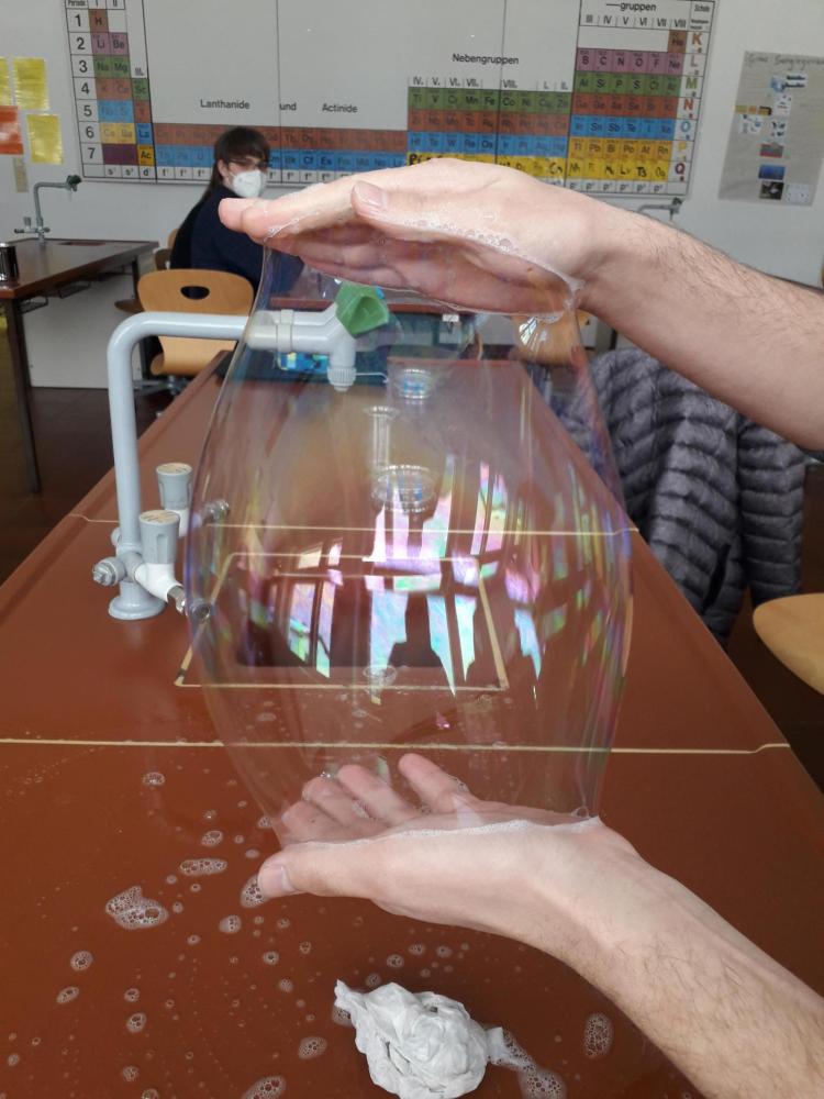 Abschließend lässt sich also sagen, dass uns Frau Graz viel über Seifenblasen gelehrt und die Theorie anhand der ausgewählten Versuche gut ersichtlich gemacht hat.