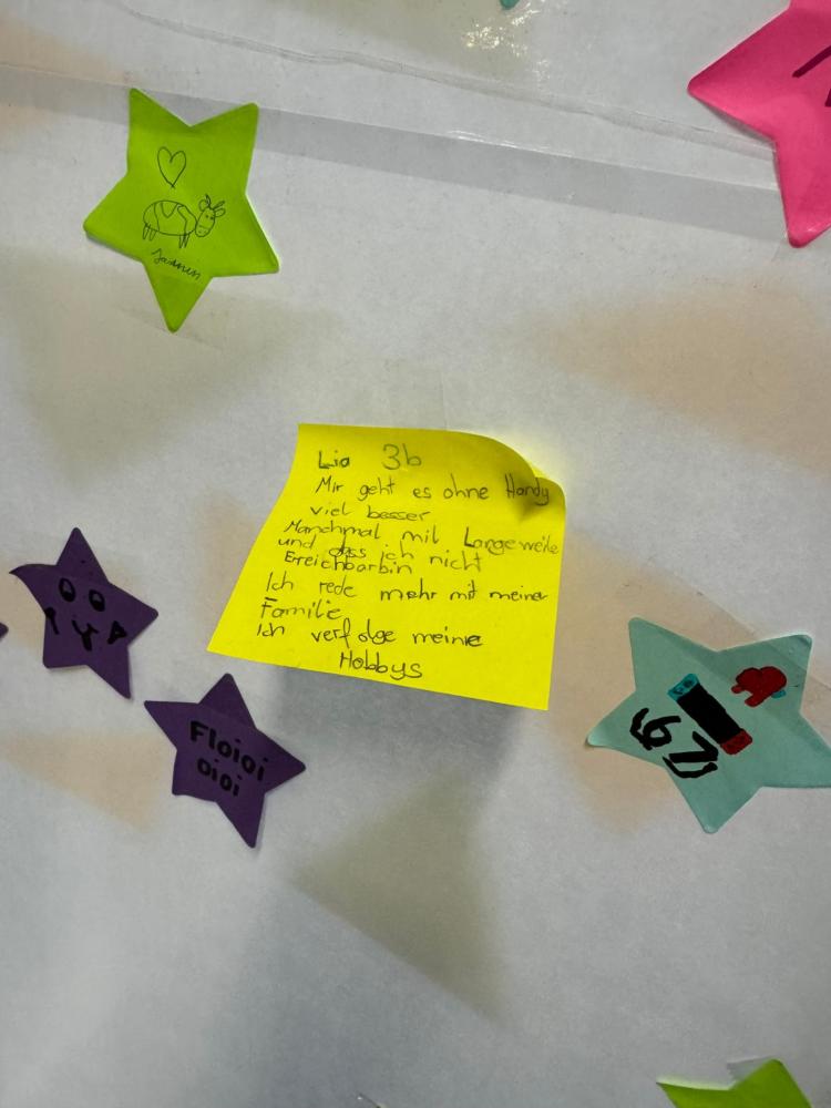 „Es ist gut, wenn man etwas mit Freunden unternimmt, dass sie nicht die ganze Zeit auf das Handy schauen und man mehr miteinander redet.“ Lea Stupakova 3c