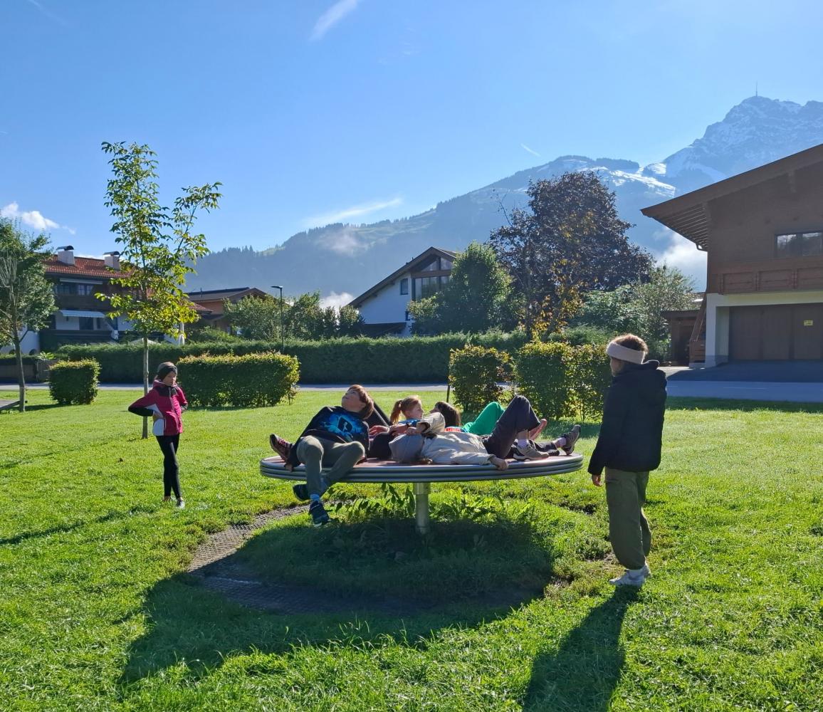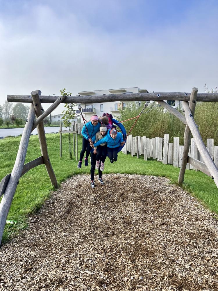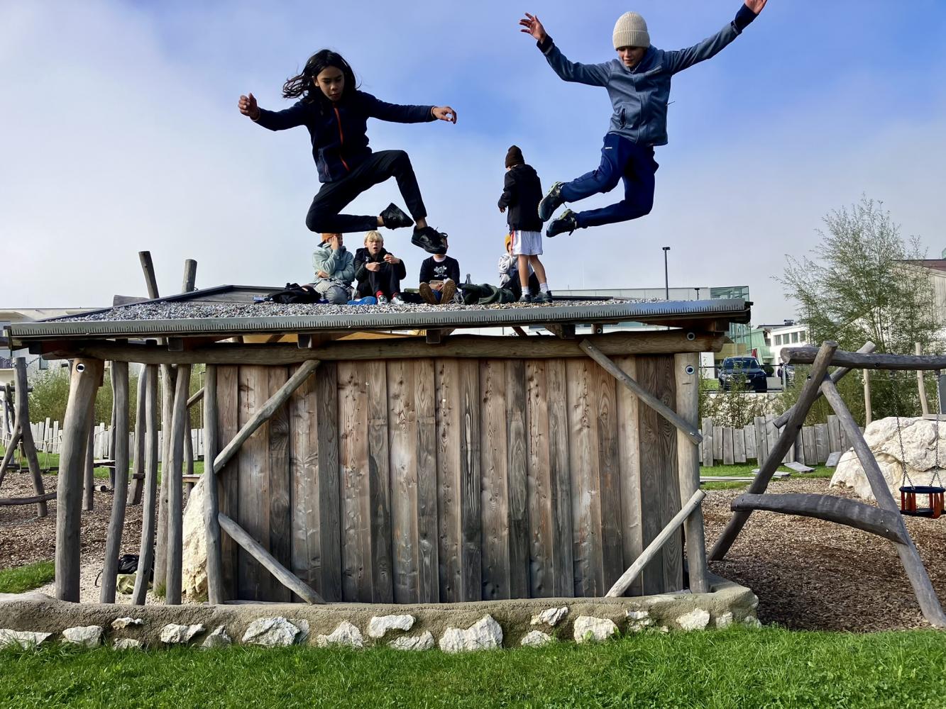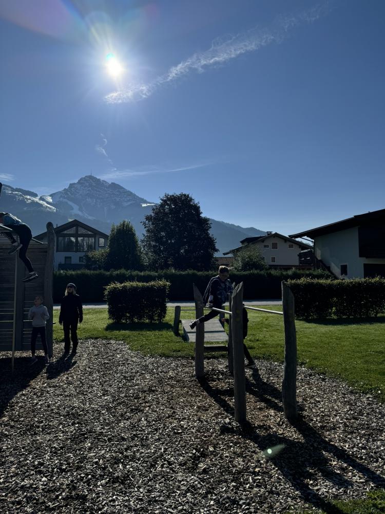 Im dichten Nebel starteten wir die 3d los und spazierten entlang der Ache Richtung Kirchdorf. Dort angekommen, machten wir bei der Volksschule Rast, um uns für den Spielplatz zu stärken. Nach einer sehr netten Begegnung mit der Volksschullehrerin von einigen von uns, tobten wir uns an der kleinen aber feinen Einrichtung aus. Es stellte sich heraus, dass man dort nicht nur viel Spaß haben sondern auch einige Mutproben bestehen kann. Bei herrlichem Sonnenschein und angenehmen Temperaturen gingen wir wieder zurück und beendeten gut gelaunt diesen Vormittag.