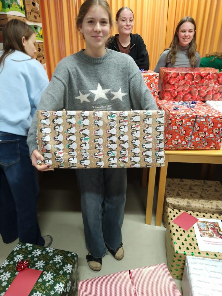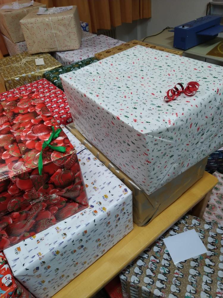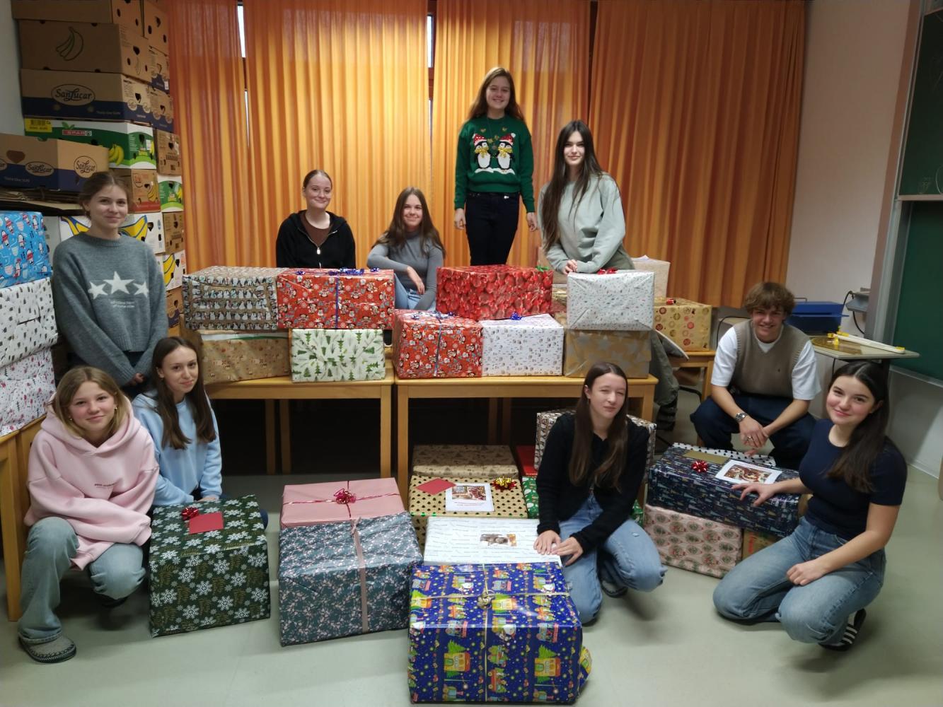 Für die Weihnachtspaketaktion des Jugendrotkreuzes sind im November und Dezember an der Schule Lebensmittel gesammelt worden. Damit konnten 46 große Bananenschachteln gefüllt werden, die diese Woche schön verpackt an die Caritas und das Rote Kreuz St. Johann übergeben werden.