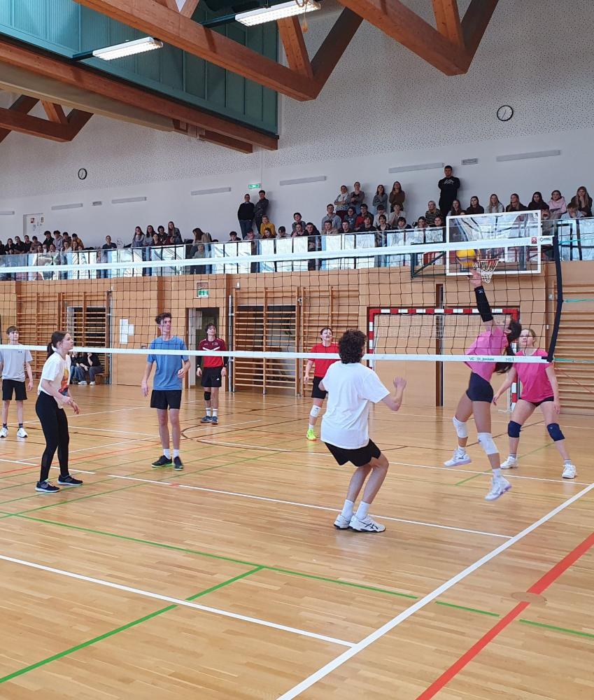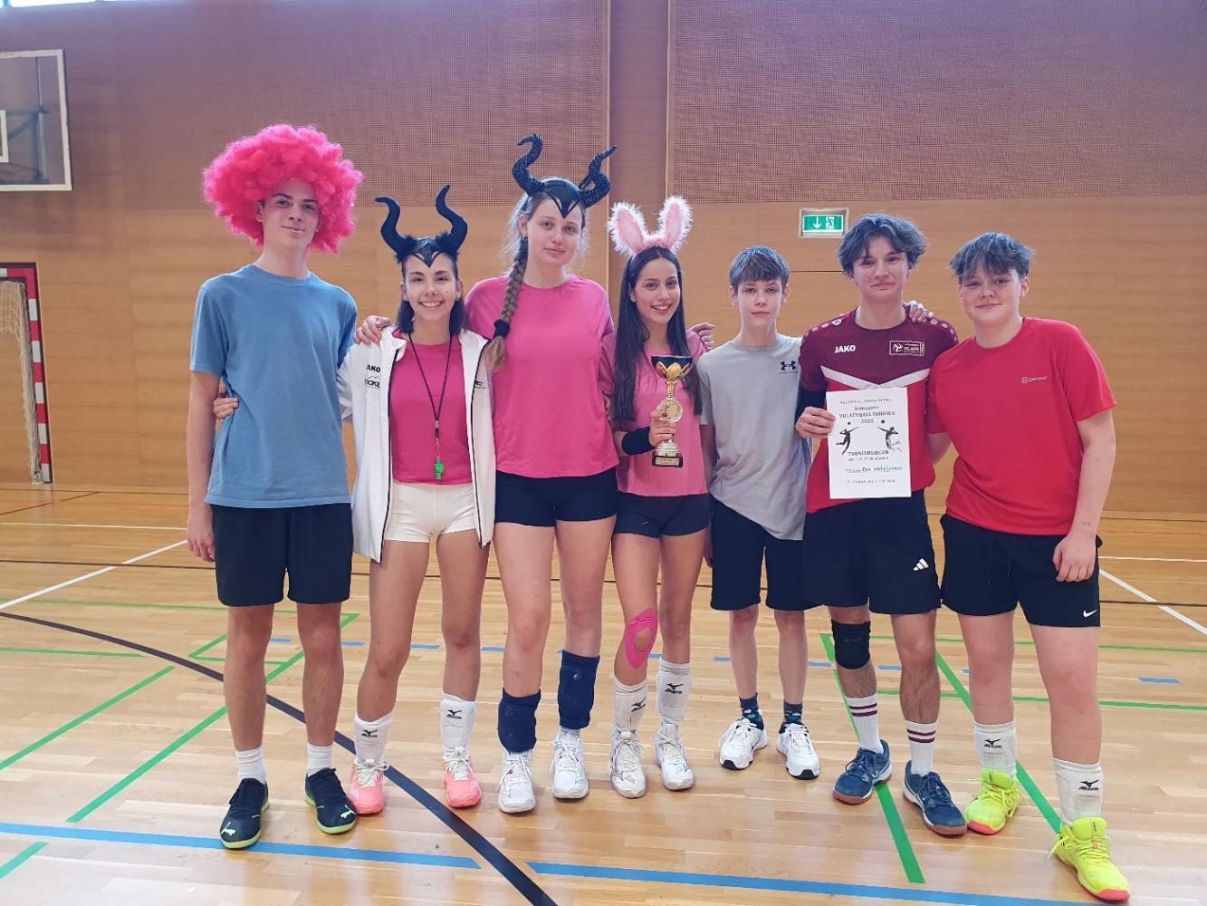 Das Volleyballturnier der Oberstufe war ein echtes Highlight und sorgte für ordentlich Spannung – 15 Teams, 65 packende Spiele, viele Zuseher:innen, einige kreative Teamnamen und Outfits machten dieses Event zu einem unvergesslichen Erlebnis. Spaß und Teamwork standen im Vordergrund.