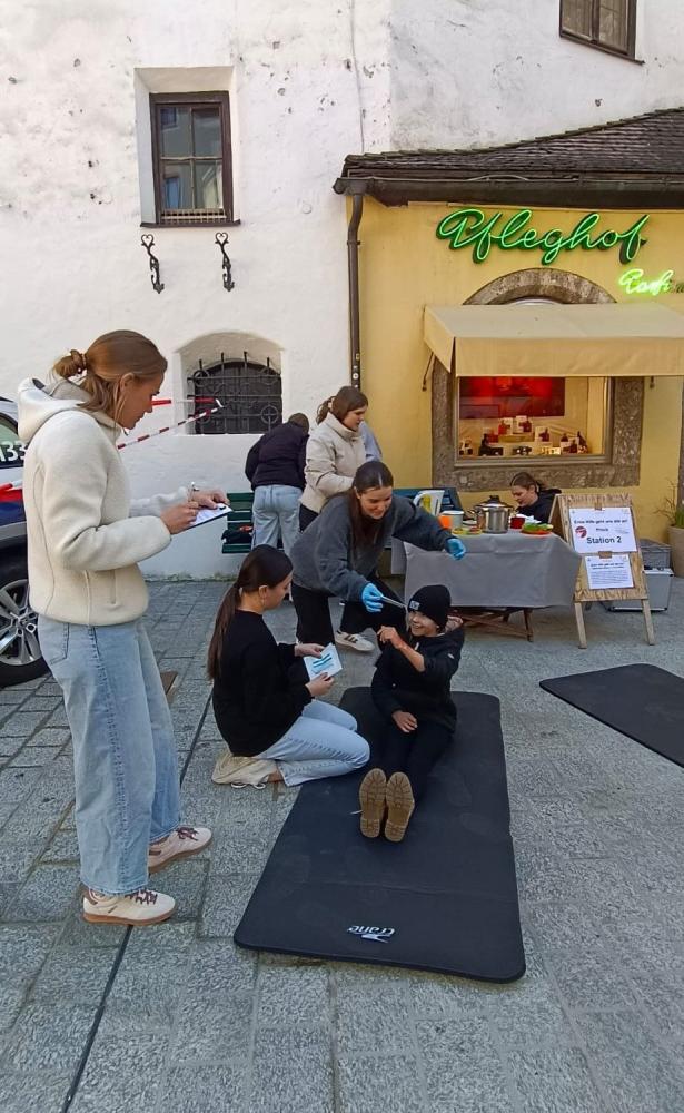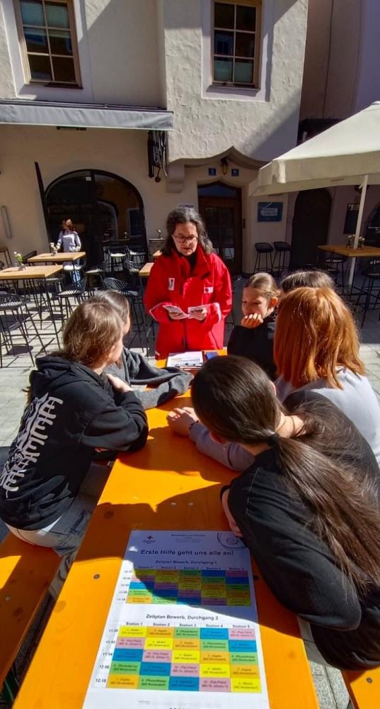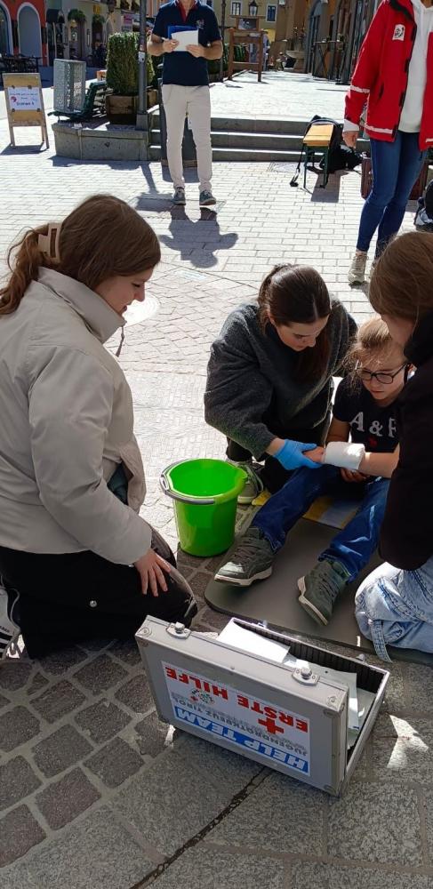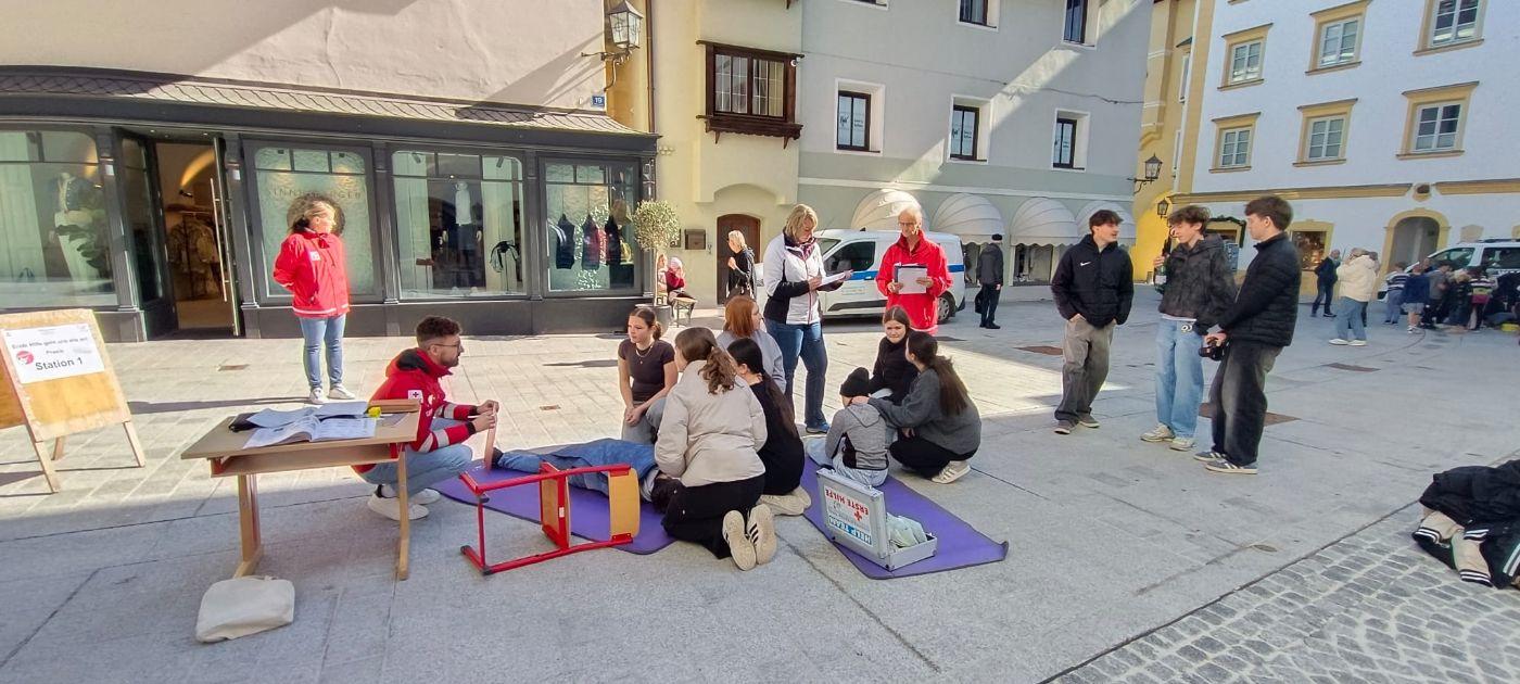Aus diesem Grund organisierte der Bezirksausschuss des JRK Kitzbühel einen Erste-Hilfe-Bewerb für die Sekundarstufen I und II in der Kitzbüheler Altstadt. Ziel war es, der Öffentlichkeit zu zeigen, wie einfach Erste Hilfe ist, und den Schüler*innen die Möglichkeit zu geben, ihr Wissen praktisch anzuwenden.