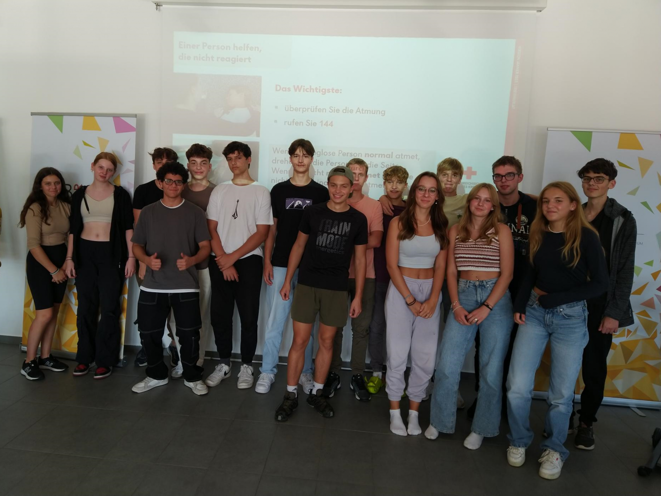 Großes Interesse herrscht wieder am 16-stündigen Erste Hilfe Kurs, der im September und Oktober an der Schule stattfindet. Aufgeteilt auf zwei Gruppen, erlernen fast 40 Schülerinnen und Schüler der Oberstufe Erste Hilfe-Maßnahmen in Theorie und Praxis. Der Kurs wird über das Jugendrotkreuz Tirol angeboten und gilt natürlich auch für den Führerschein.