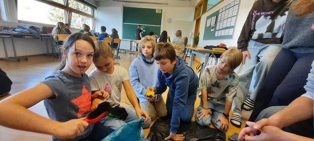 Am 24.10.2024 fand der „Green-Team-Tag“ der Klasse 7a statt. Die ersten Klassen wurden für jeweils eine Schulstunde nacheinander empfangen und von den OberstufenschülerInnen über Mülltrennung, umweltfreundliche Verkehrsmittel und richtiges Lüften unterrichtet. Höhepunkte des Tages waren für die ersten Klassen das Einpflanzen und Benennen kleiner Grünlilien, der Mülltrennungs-Wettkampf, das Nachspielen umweltfreundlicher Verkehrsmittel und dem Weg der Luft vom Fenster zur Tür nachzugehen. Zum Schluss wurden SchülerInnen dafür eingeteilt, sich um das richtige Lüften oder das Gießen der neuen Bewohner zu kümmern. Die ersten Klassen hatten nicht nur jede Menge Spaß, sondern wurden durch die Aktion darauf aufmerksam gemacht, wie wir in unserem Schulalltag besser auf die Umwelt achten können.