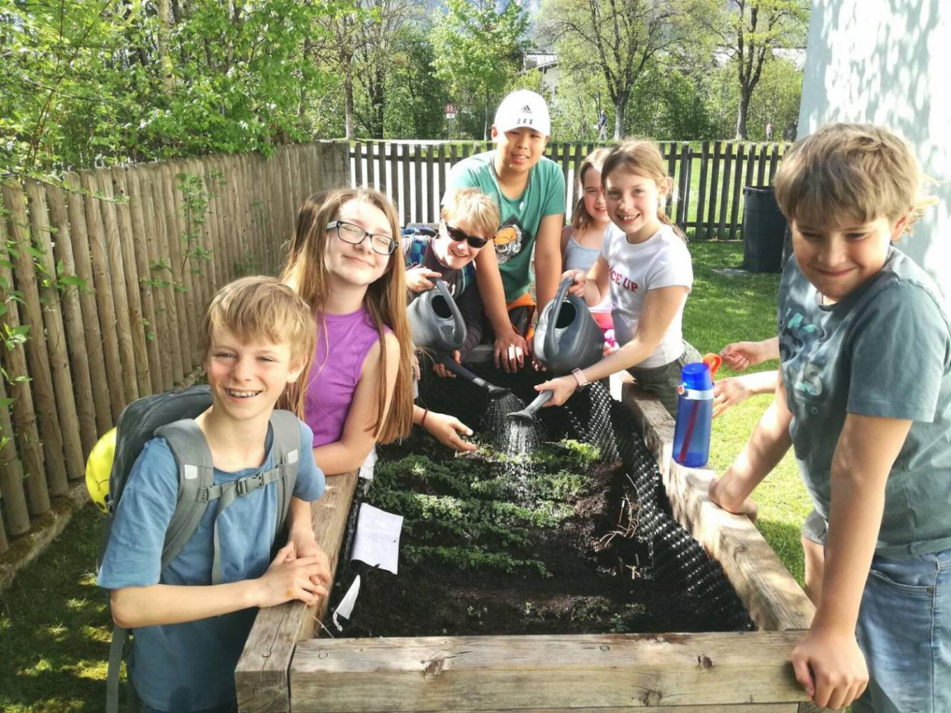 Die Kinder der Nachmittagsbetreuung gestalten die Schul-Hochbeete: Sie befüllen diese mit frischer Erde und säen verschiedene Kräuter- und Gemüsesamen aus. Mit viel Freude beobachten Sie das Wachstum der Keimlinge. Besonders spannend ist für die NachwuchsgärtnerInnen die Verkostung der ersten Ernteerfolge, bei der sie bereits die frisch gewachsenen Kräuter probieren. Die SchülerInnen freuen sich schon auf eine gesunde und vielseitige Jause nach dem Sportprogramm während der Betreuung am Nachmittag!