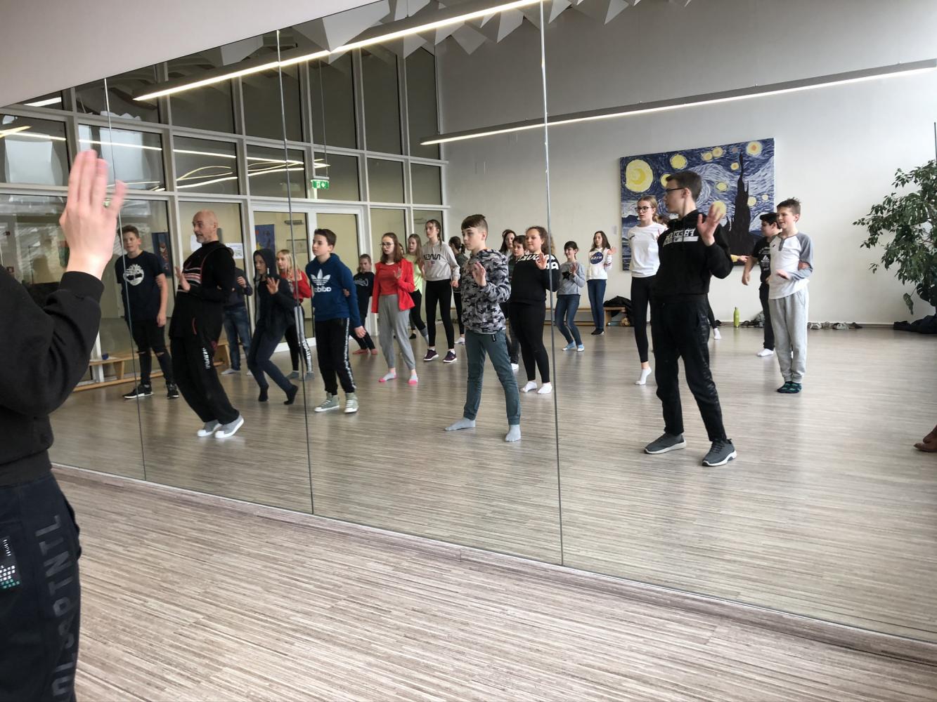 Am 10.3.2020 hatten die 3. Klassen einen Hip-Hop Tanzworkshop. Dazu kam unser Tanzlehrer aus dem Musik-Zweig, Daniel Renner, zu uns, der auch ein erfahrener Hip-Hop Tänzer ist.