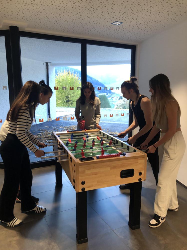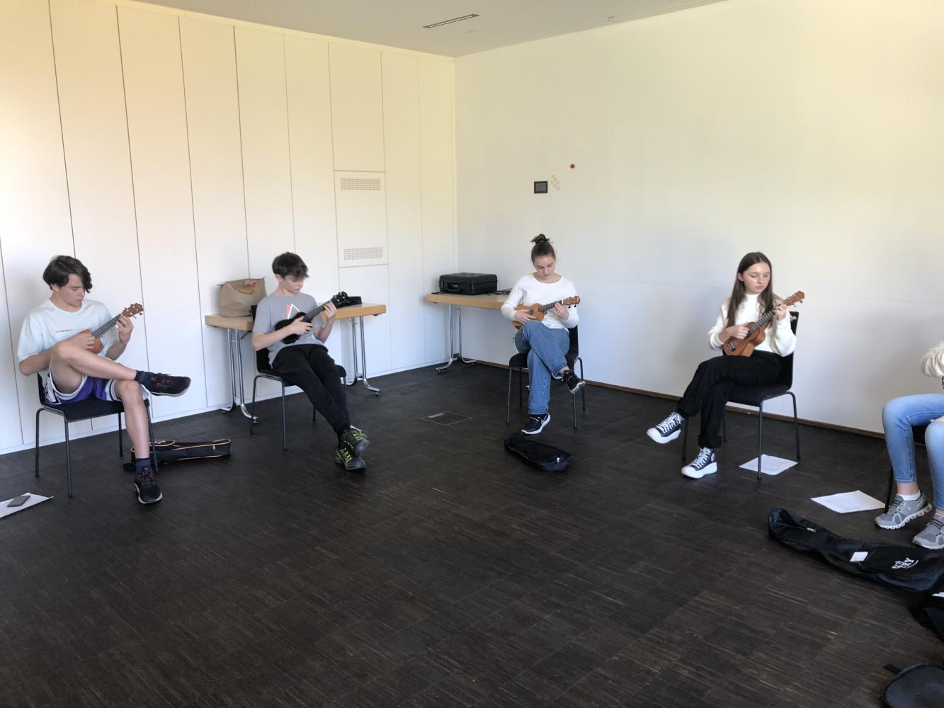 Am Montag kamen wir am späten Vormittag in der Unterkunft an und trafen uns nach dem Mittagessen im Gruppenraum zu einem Workshop. In drei Gruppen durften wir uns an Ukulelen, Klavier und Gesang ausprobieren. Nach dem Abendessen waren wir nochmals gefordert, indem wir gemeinsam ein spannendes Rätsel lösen mussten, was uns fast gelang. Zum Abschluss spielten wir noch ein lustiges Kennenlernspiel.