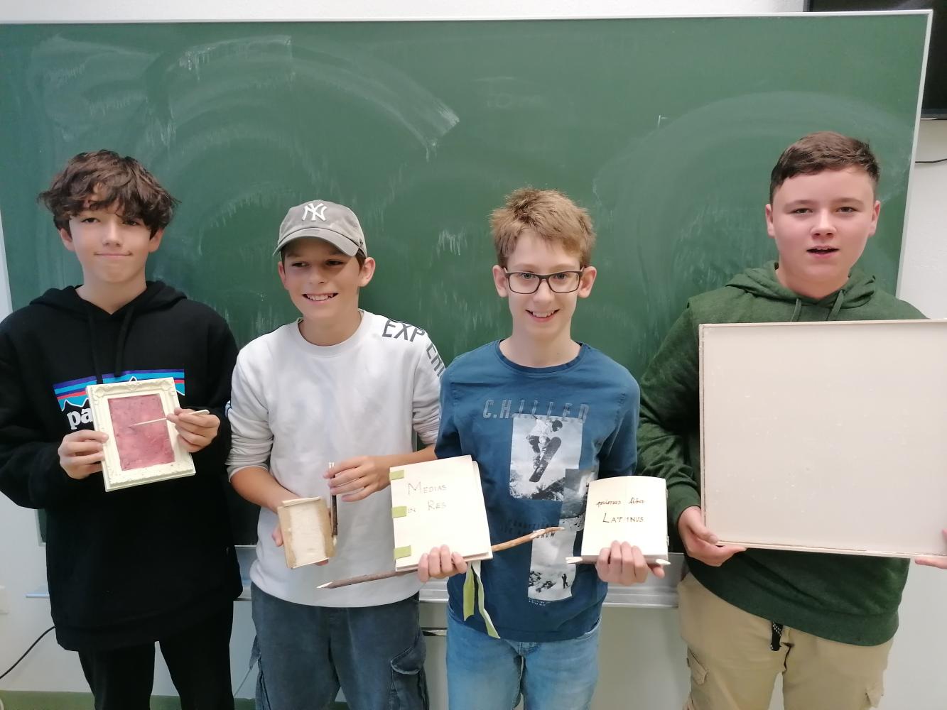Worauf haben alte Römer geschrieben? Dieser Frage sind wir im Lateinunterricht der 3bc nachgegangen und haben festgestellt, dass die Römer auf Papyrus, Pergament und auch auf Wachstafeln geschrieben haben. Begeistert von der Idee, eine eigene Wachstafel zu besitzen, haben manche Schüler zuhause eine eigene Wachstafel gebastelt, teilweise samt eines stilus ("Griffel") zum Schreiben.