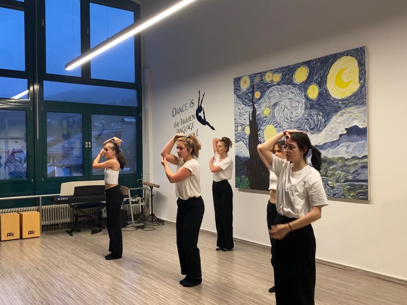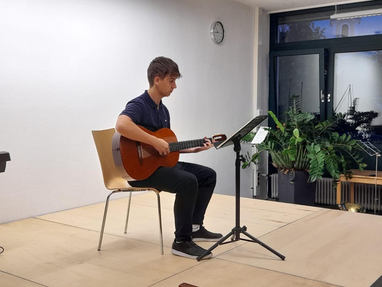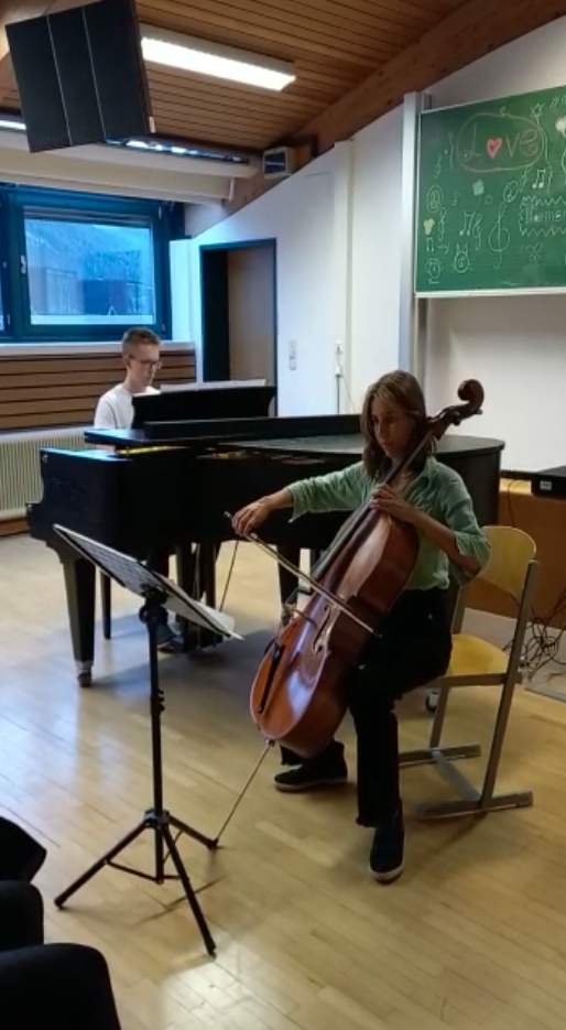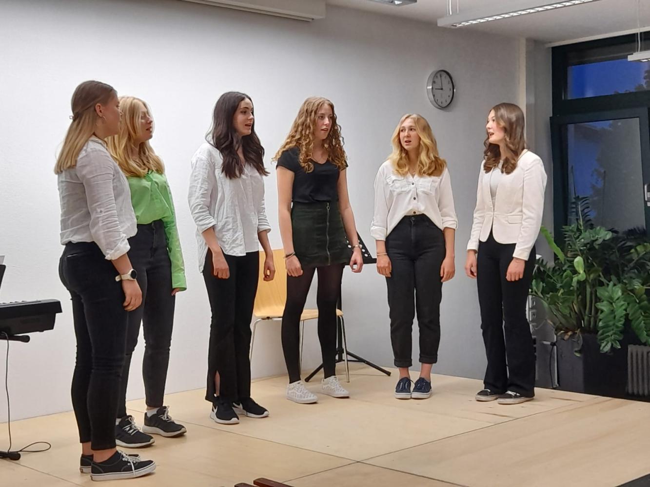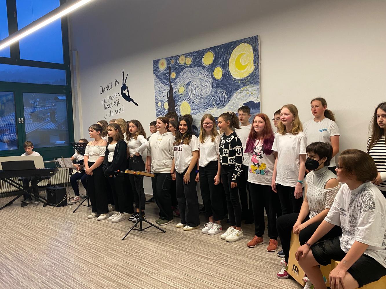 Nach coronabedingter Pause lud das Gymnasium St. Johann endlich wieder alle Musikbegeisterten dazu ein, die musikalischen Talente seiner Schülerinnen und Schüler zu bewundern. Um 19 Uhr standen circa 250 Besucherinnen und Besucher erwartungsvoll vor dem Eingang des Gymnasiums. Dort empfing sie der Oberstufenchor „Chorios“ mit vier Gesangsdarbietungen passend zum Thema des Abends „Love, Peace and Harmony“, die mit Begeisterung aufgenommen wurden. Anschließend wurden die Gäste mithilfe von Armbändern in drei Gruppen aufgeteilt und jeweils zu einer von drei Konzertstationen des Abends geführt. An jeder Station gab es ein buntes Programm aus Instrumentalstücken, Gesang und Tanz, dargeboten von den Klassen 5d, 6d und 7d des Musikzweigs sowie musikbegeisterten Schülerinnen und Schülern der Unterstufe von der 1. bis zur 3. Klasse. Egal ob bei Soli auf Klavier und Gitarre, Querflötenensembles, Darbietungen des Modern Dance oder Gesangsstücken ganzer Klassen, die Kinder und Jugendlichen im Alter von 10 bis 18 Jahren machten den Abend zu einem besonderen musikalischen Erlebnis.