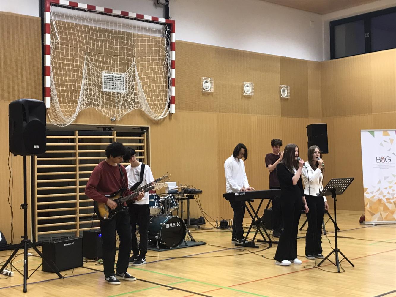 Nach dem Besuch aller drei Stationen war der Abend für die Besucherinnen und Besucher jedoch noch nicht zu Ende, sondern es durfte noch „gerockt“ werden. Der abschließende Spaziergang führte zur Schulband, die mit ihrem Auftritt ordentlich für Stimmung sorgte. Aufgrund des Wetters war ein Ausklang auf dem großen Sportplatz der Schule leider nicht möglich, die Sporthalle bot jedoch einen erstaunlich guten Ersatz.