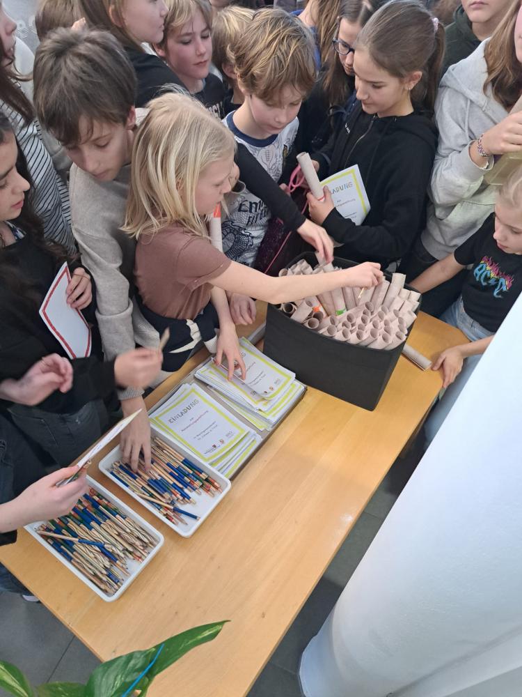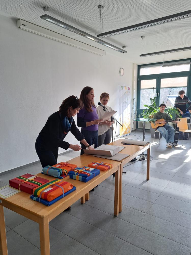 Die vielen tollen Preise wurden vom Elternverein gesponsert, der auch bei der Bekanntgabe der Preisträger:innen mitgeholfen hat.