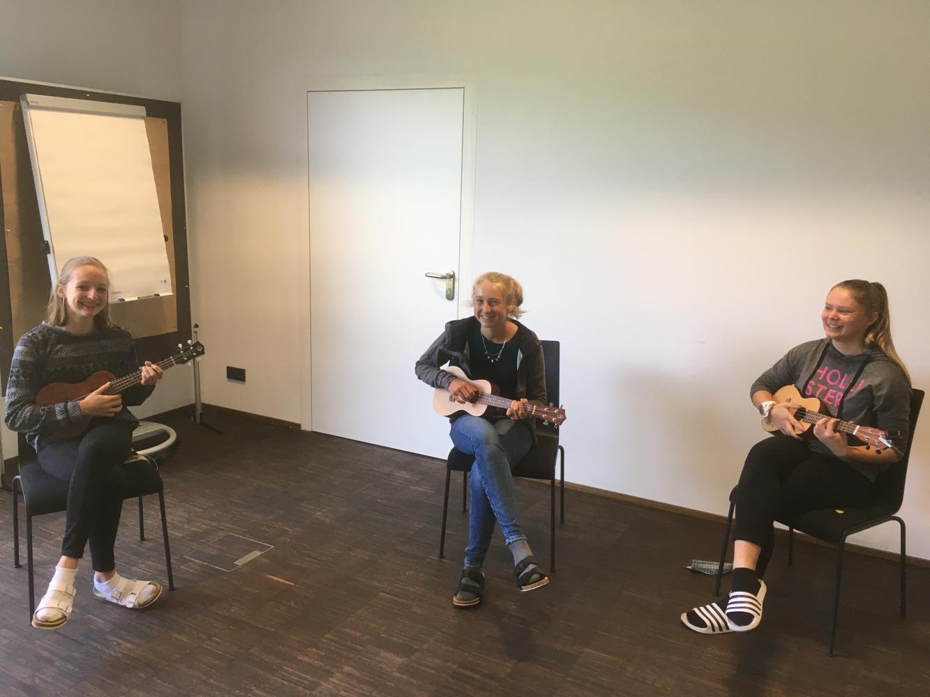 Nach einer „kleinen Wanderung“ zum Bildungshaus St. Michael und einem leckeren Mittagessen startete unser vielseitiges Programm. Neben vielen Spielen zum Kennenlernen sowie einem ausgedehnten Spaziergang konnten wir bei den Workshops in Ukulele, Tanz, Gesang, Klavier, Chor, Orchester und Percussion in die unterschiedlichen Bereiche des Musikzweiges hineinschnuppern.