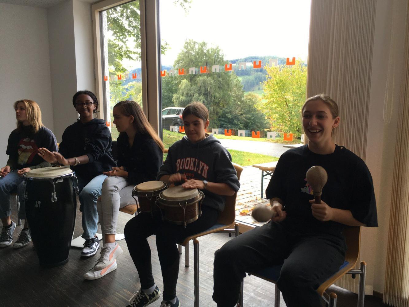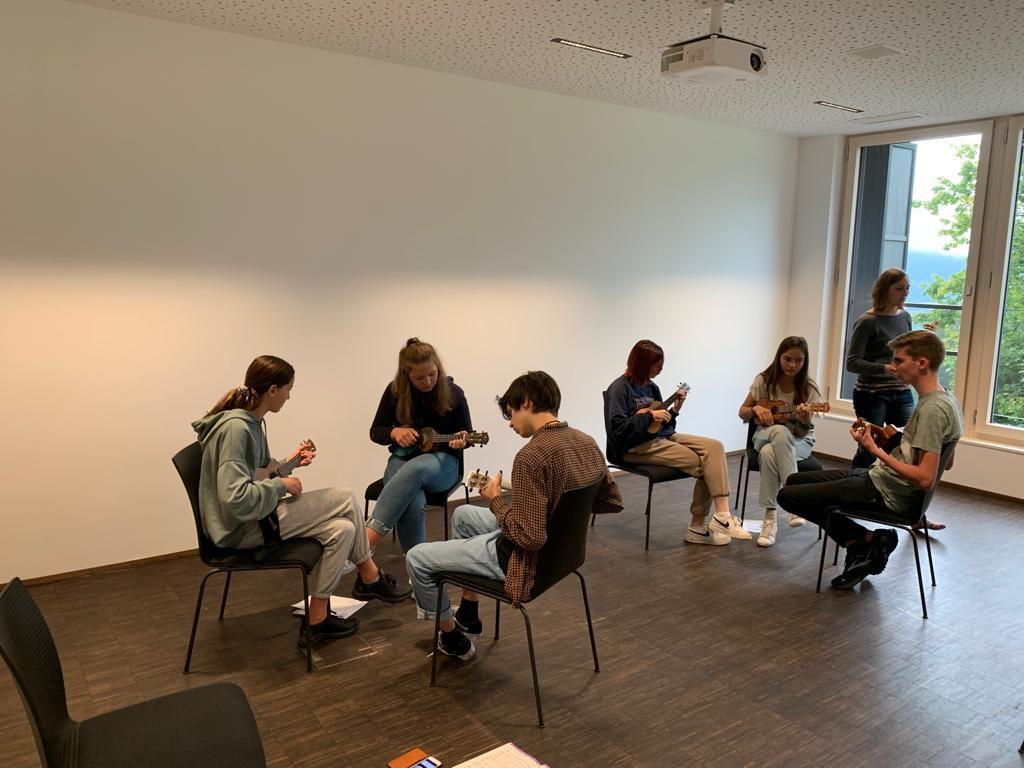 Neben Kennenlernspielen, bei denen wir gemeinsam ohne zu Sprechen Stühle anordnen und eine Flugzeugentführung aufdecken sollten, erwarteten uns Workshops in (Body-)Percussion, Tanz, Chor, Ukulele, Klavier und Gesang. Hits wie „Riptide“, „Don’t worry be happy“, „Wellerman“, „Let it be“ und „Nervous“ bleiben dabei besonders in Erinnerung.