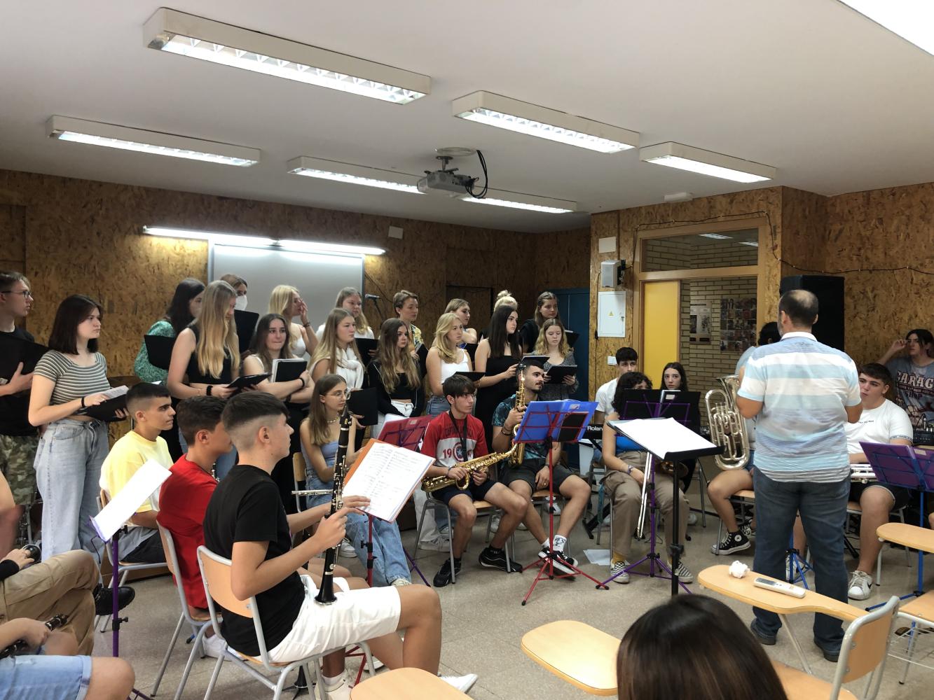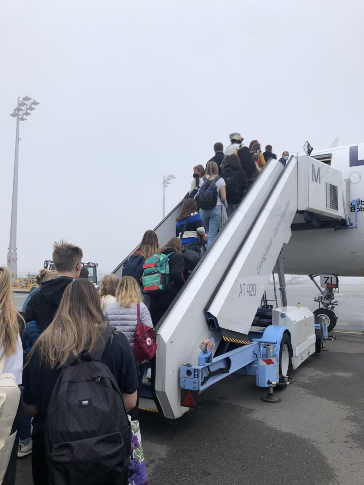 Unsere Musikwoche in Spanien begann sehr früh (04:30 Uhr). Alle waren müde, doch sehr aufgeregt! Während der Fahrt zum Flughafen in München wurde schon viel gesungen und gelacht. Manche waren aber auch skeptisch, wie es ihnen in den spanischen Gastfamilien wohl gehen würde. Nach einem guten Flug (für einzelne war es der erste überhaupt) und einer langen Busfahrt nach Bigastro war es endlich so weit. Endlich trafen wir unsere Gastfamilien nicht nur über den Bildschirm. Wir wurden supernett in Empfang genommen und gingen am Abend noch alle zusammen mit unseren Gastgeschwistern Pizza essen. So konnten wir uns gleich viel unterhalten und besser kennenlernen. Es sollte der erste von vielen langen Tagen sein…