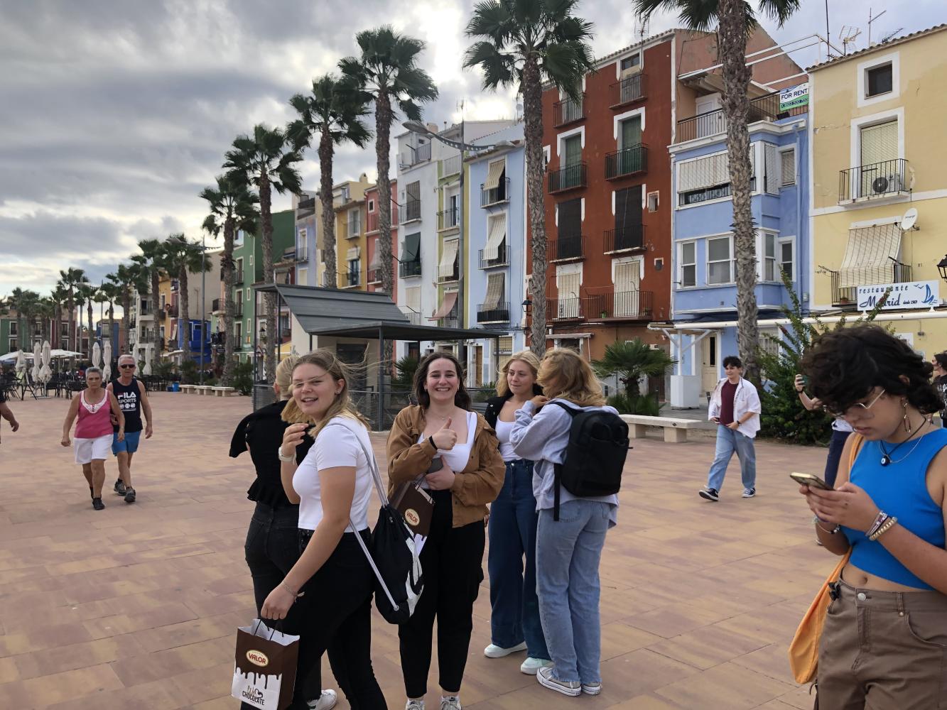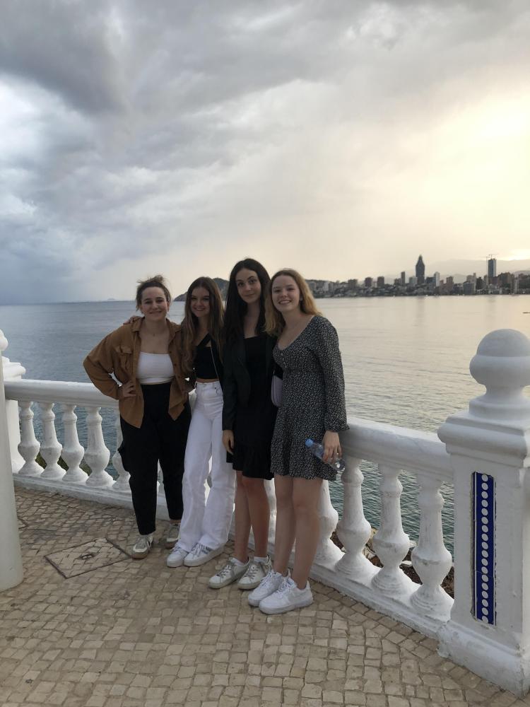 Der erste komplette Tag in Spanien, oder wie die Spanier sagen würden: el día Numero uno, begann mit Proben für unser gemeinsames Konzert und einem Ausflug nach Villajoyosa in die dortige Schokoladenfabrik Valor. Ein kurzer Abstecher zum Strand, der in Nähe lag, durfte natürlich auch nicht fehlen. Die Kombination aus bunten Häusern und blauem Meerwasser gestalteten den Hintergrund unseres Fotoshootings. Daraufhin führte unsere Busreise samt der temperamentvollen und gesangsfreudigen Spanier:innen nach Benidorm. Wir schlenderten an der Promenade hinauf zu einem wunderschönen Aussichtspunkt, den wir nur dank unserer tollen Reiseleitung – die spanische Englischlehrerin Rosa - fanden. Am Ende des Tages fielen wir Fix und Foxi in unsere Gastfamilienbetten.