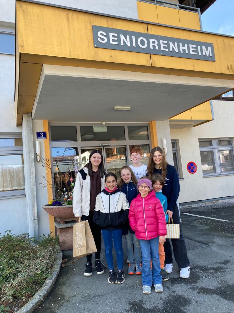 Nach einer Woche haben wir mit vier Schülerinnen und Schülern das Altersheim besucht. Dort haben wir die gebastelten Sachen verschenkt und Gedichte über Müll vorgelesen.