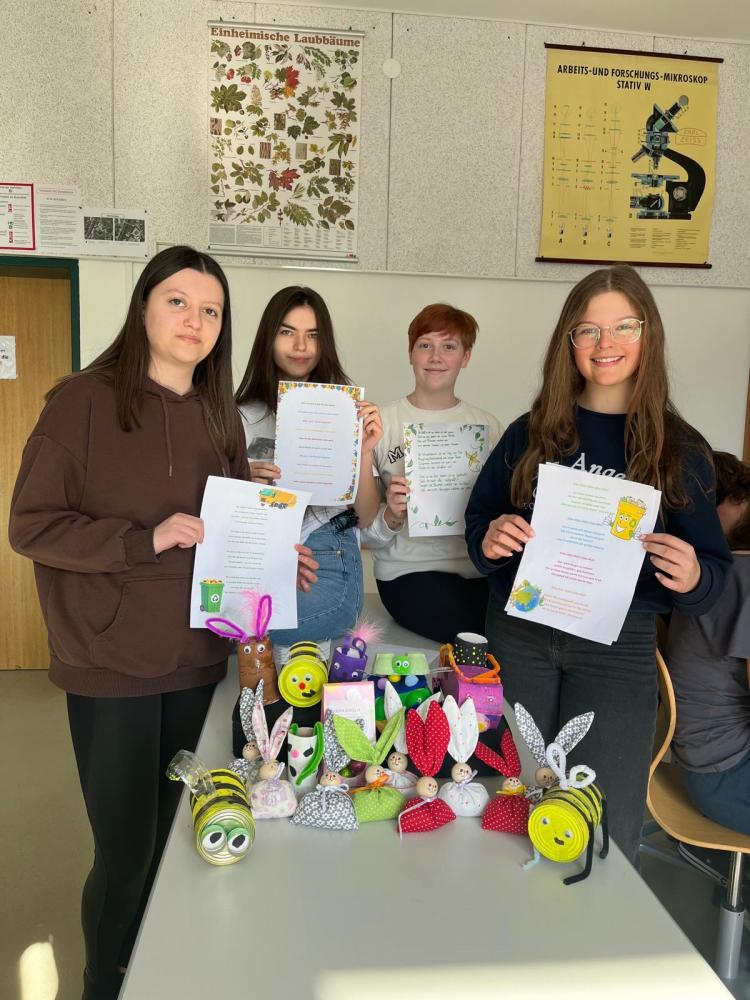 Wir, Schülerinnen der 5c Klasse des Gymnasiums St. Johann, sind in die Volksschule St. Johann gegangen und haben dort die 3d besucht, um spielerisch etwas über Recycling und Upcycling zu lernen. Gemeinsam mit ihnen haben wir aus alten Materialien, wie Plastikflaschen und Eierkartons Kunstwerke gebastelt. Außerdem haben wir Blumentöpfe hergestellt und verschiedene Samen eingepflanzt.