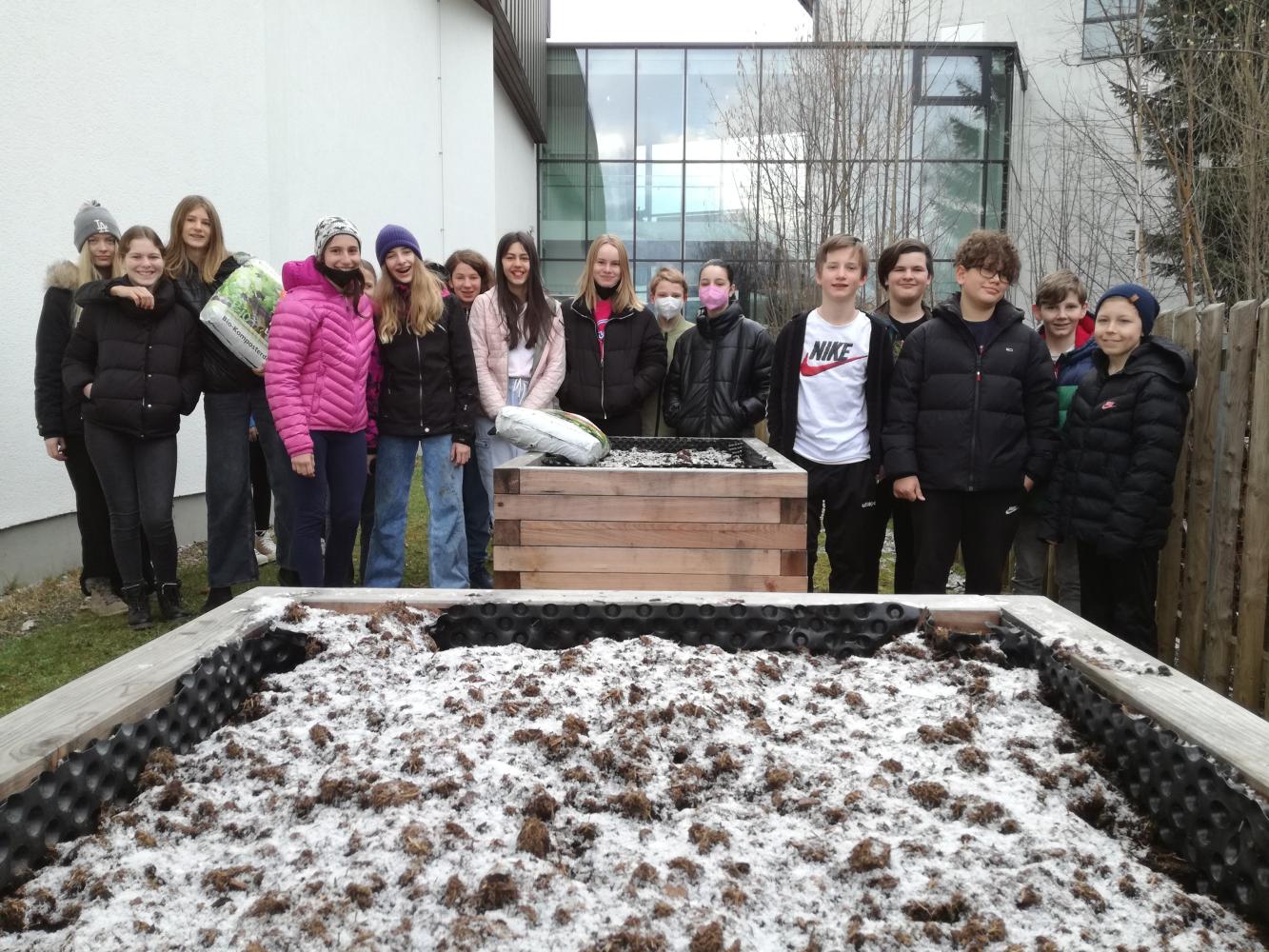 Im Schuljahr 2020-21 fertigten SchülerInnen der zweiten Klassen (2b, 2c) im Werkunterricht Hochbeete an, die anschließend am Schulgelände aufgestellt wurden. Im Herbst bzw. Frühjahr des darauffolgenden Schuljahres (2021-22) befüllten jene SchülerInnen die Hochbeete fachgerecht.