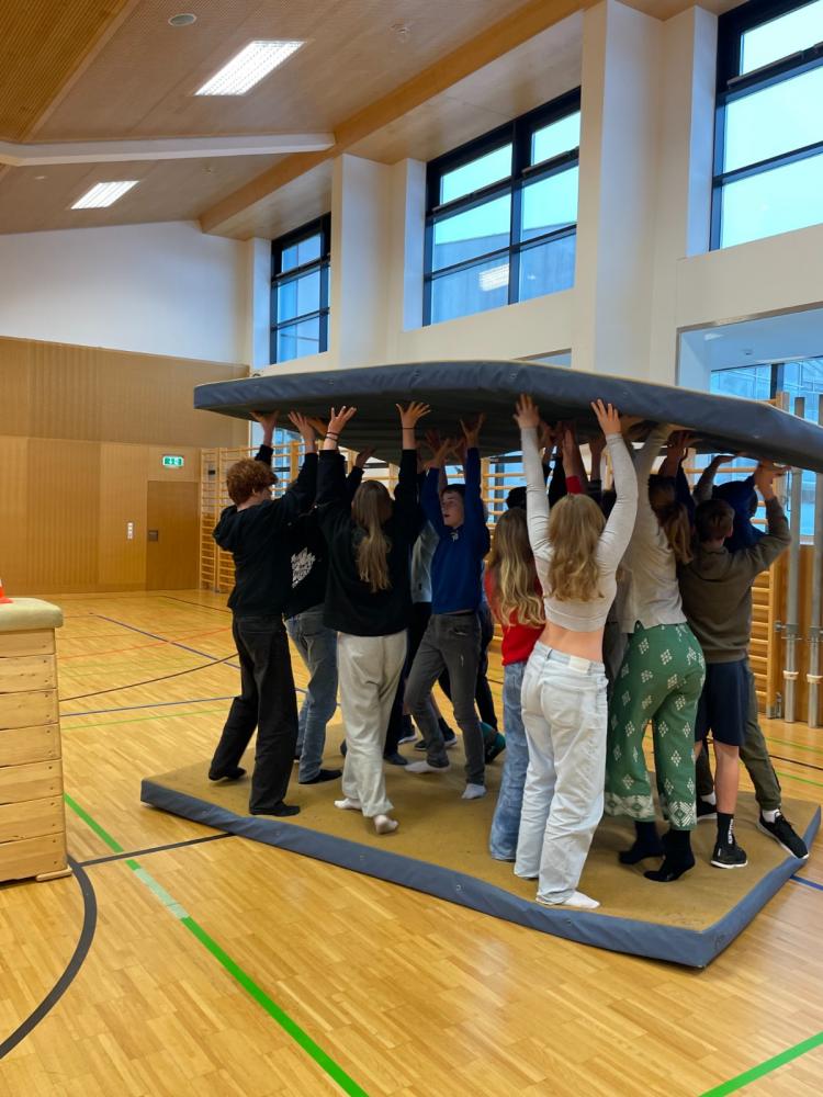 Die Lateingruppe der Klassen 4bc stand bereits vor Weihnachten vor den zahlreichen herausfordernden Aufgaben einer eigenen Odyssee in der Sporthalle. Und dabei ging es um viel: Sollte das gesamte Team das Ziel erreichen, würde jede*r Einzelne einen Vokabeljoker bei der nächsten Schularbeit bekommen. Neben Teamwork und Geschicklichkeit waren auch exzellente Lateinkenntnisse gefragt, um die Aufgaben zu lösen.