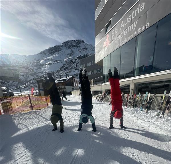 Am nächsten Morgen wurden wir nach dem Frühstück in fünf Gruppen eingeteilt. Danach starteten wir motiviert in unseren ersten Skitag am Arlberg. Obwohl die Sicht schlecht war, powerten wir uns auf den Pisten voll aus. Vor dem Abendessen nutzten viele von uns noch die Turnhalle und das Gym, welches für große Begeisterung sorgte.