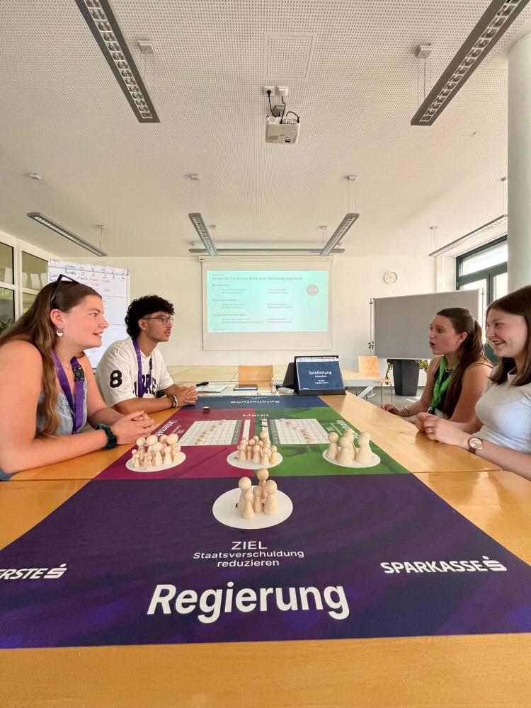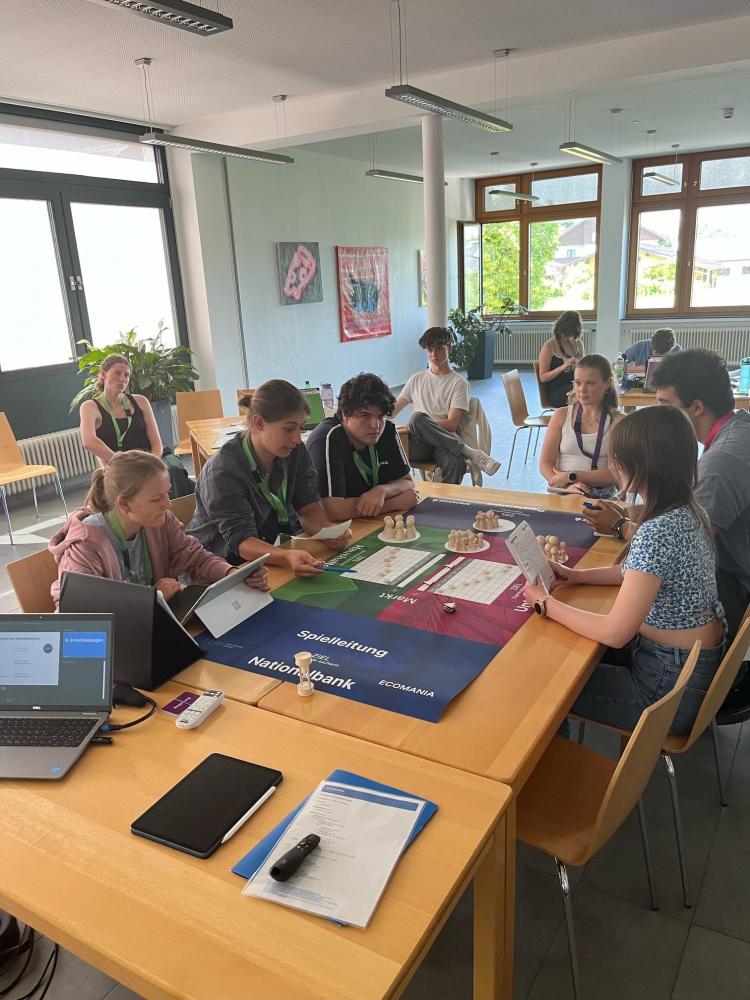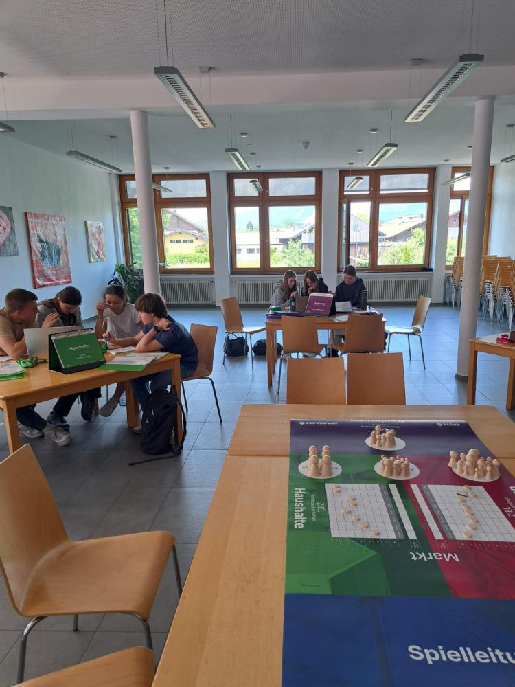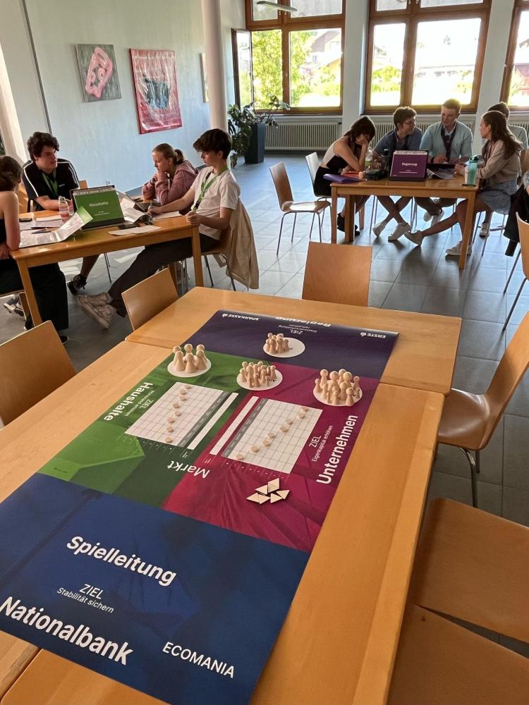 Mit dem Planspiel „Ecomania“ der Sparkasse konnten die SchülerInnen der 7. Klassen volkswirtschaftliche Themen spielerisch erfahren. In drei Rollengruppen unterteilt (Staat/Unternehmen/Haushalte) zeigten sie sich äußerst engagiert bei Pressekonferenzen, überlegt bei Lohnverhandlungen und geschickt bei Konsumentscheidungen.