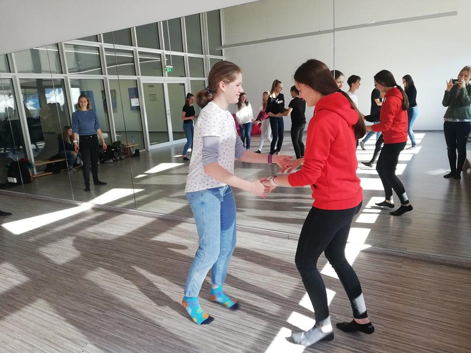 Um Punkt 10:00 Uhr standen alle Schüler/innen voller Vorfreude im Tanzsaal und nach einer kurzen Vorstellung der Tanzlehrerin ging es los.