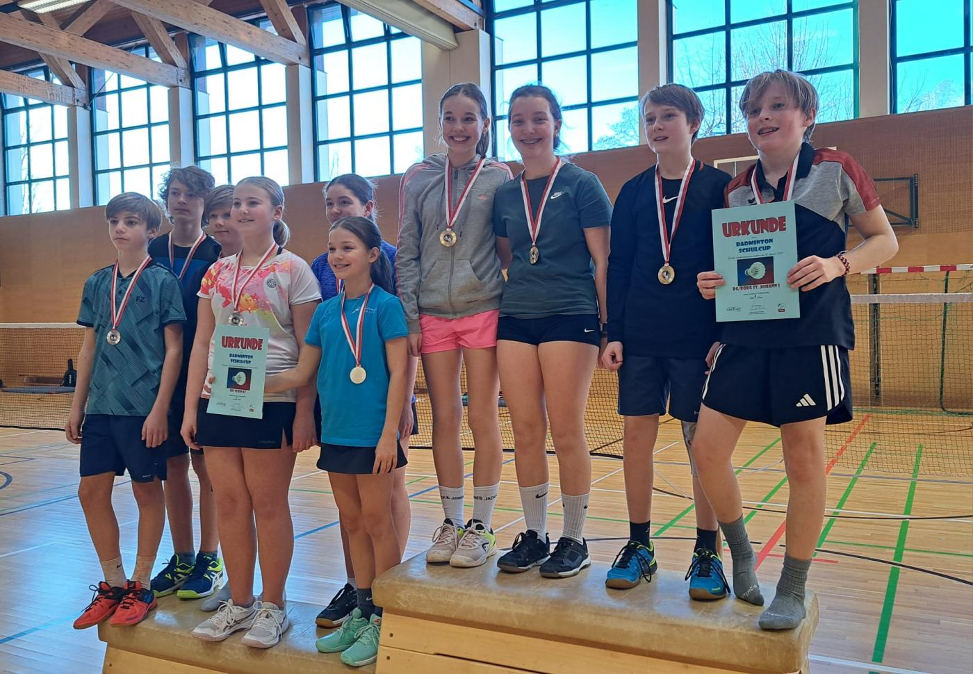 Am Mittwoch, 29.1. fand am BG/BORG St. Johann die LMS im Badminton Schulcup statt. 28 Teams aus ganz Tirol kämpften in drei verschiedenen Kategorien um den Landesmeistertitel. Die Gastgeber waren insgesamt mit sechs Teams vertreten. Die Spiele verliefen auf hohem Niveau und trotz des Kampfgeists stand die Fairness im Mittelpunkt. In allen Kategorien konnten sich die Schüler:innen des Gymnasiums St. Johann bis ins Finale durchspielen. Bei den männlichen Oberstufenschülern mussten sich die St. Johanner in einem packenden Finale nur knapp dem BG Schwaz geschlagen geben. Bei den Mädels der Oberstufe kämpften die St. Johannerinnen im Finale gegen das BG Lienz, das zum Schluss ebenfalls ganz knapp die Nase vorne hatte. Das zweite Team aus St. Johann musste sich im Spiel um Platz drei den Mädels aus der HLW Lienz geschlagen geben.