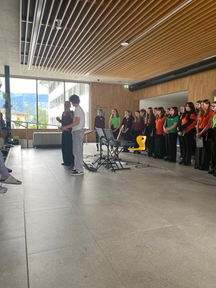 Unser Schulchor „Chorios“ hat auf seiner Tour durch die Mittelschulen von Kirchberg, Westendorf, Hopfgarten und Wildschönau begeistert. Ein besonderer Dankt geht an die Raiffeisenbank, die einen Teil der Buskosten gesponsert hat.
