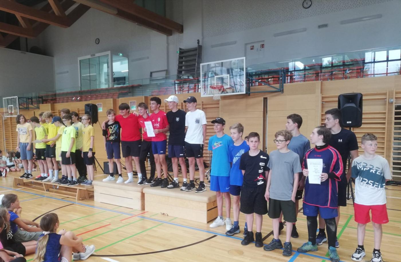 Am Ende des heurigen Schuljahres fand zum ersten Mal ein Pausen-Fußballturnier für die 1. und 2. Klassen statt. Im Laufe des Monats Juni spielten jeden Tag unterschiedliche Teams auf dem Feld im Schulhof, bei Schlechtwetter in der Halle, gegeneinander. Die Partien wurden von Schülern der Oberstufe gepfiffen - vielen Dank an Max, Maxi, Jonas und Gabreel.