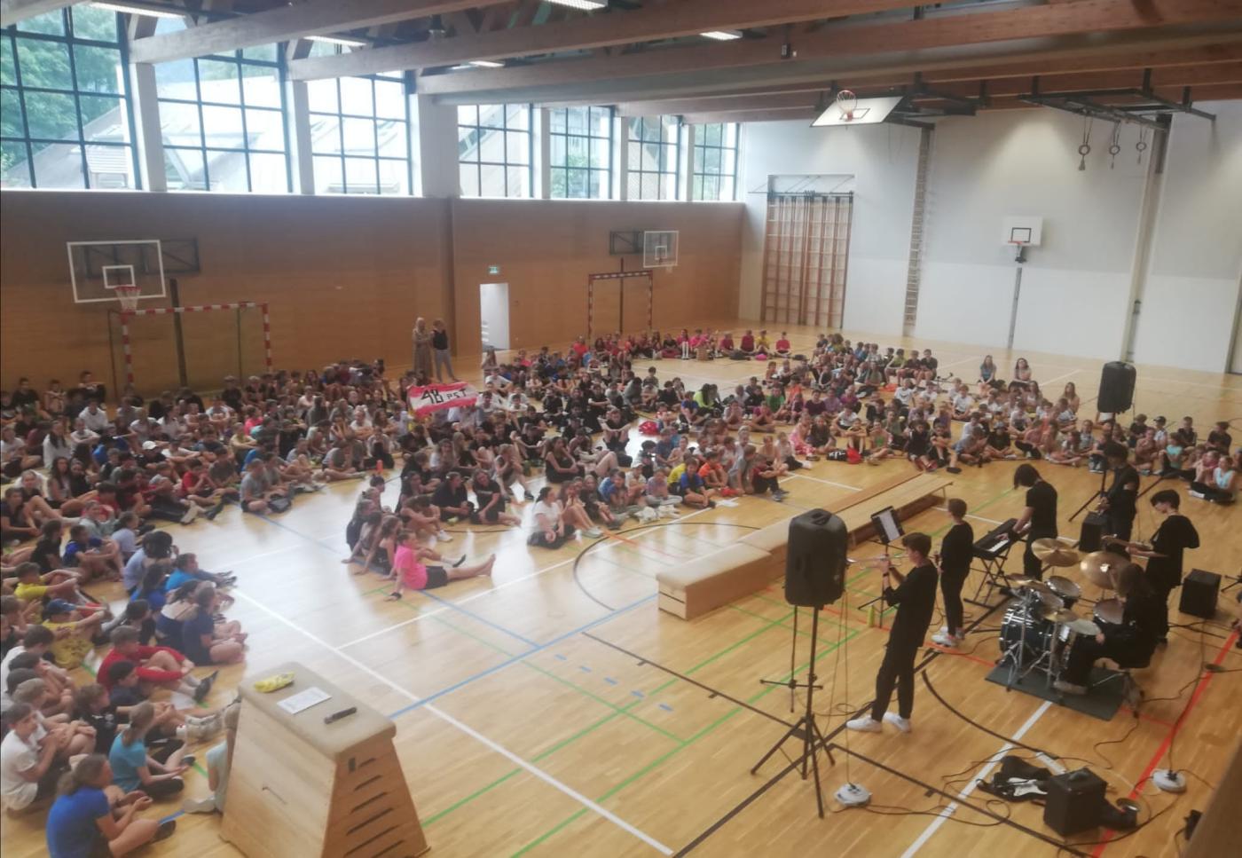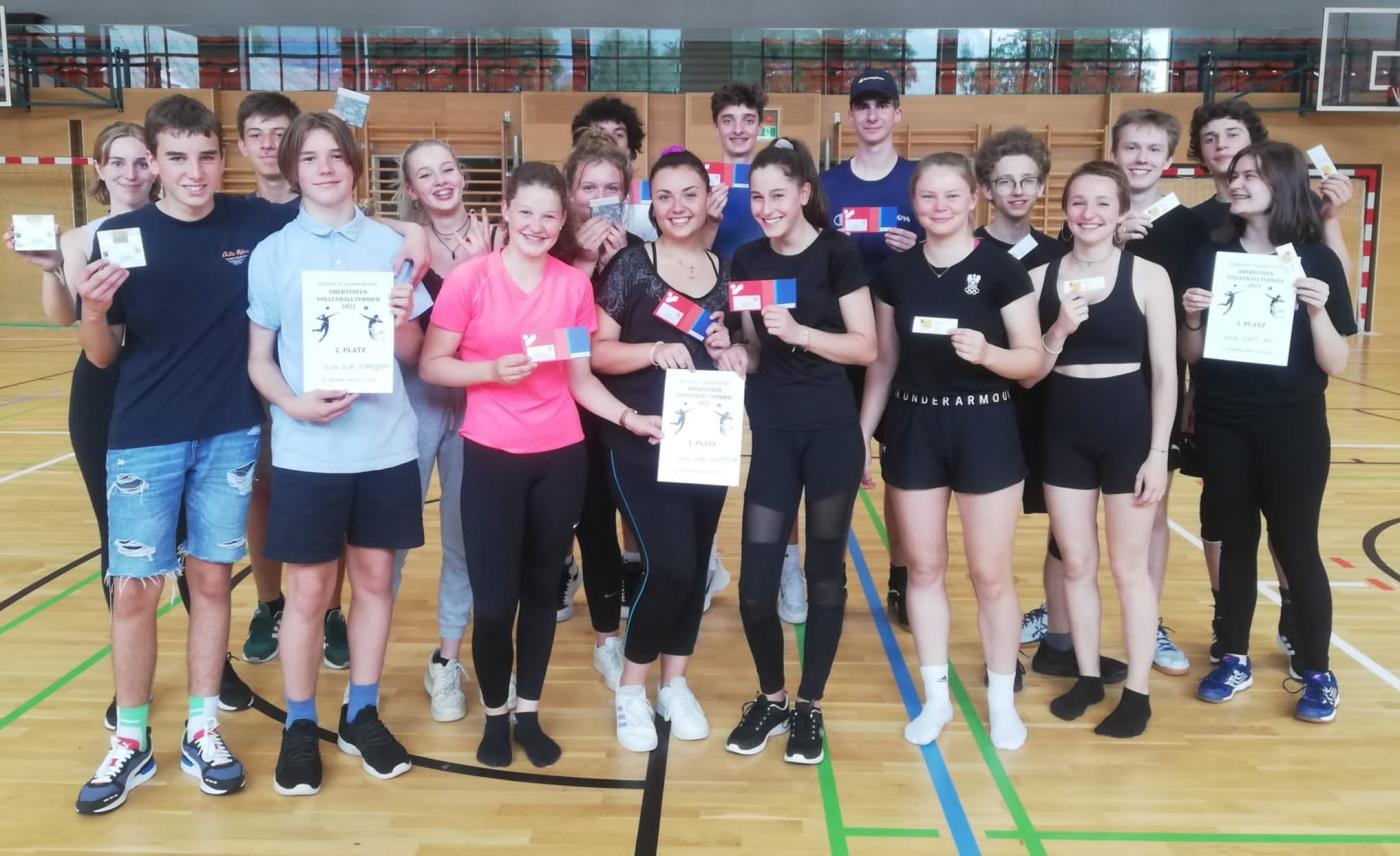 Die letzte Schulwoche hat in diesem Jahr mit einem Volleyballturnier für die Oberstufe begonnen. 105 TeilnehmerInnen verteilt auf 15 Teams spielten 45 Matches. Die Einsatzbereitschaft und die Freude waren sehr groß, die Folge eindrucksvolle Ballwechsel auf hohem Niveau. Das Team "Die Woppler" bestehend aus SchülerInnen der 5. Klassen ging als Sieger des Turniers hervor. Zweiter, auch durch SpielerInnen der 5. Klassen vertreten, wurde das Team "Die Übrigen". Als Dritter beendeten die technisch starken SpielerInnen aus den 6. Klassen des Team "Nat. 20" das Turnier.