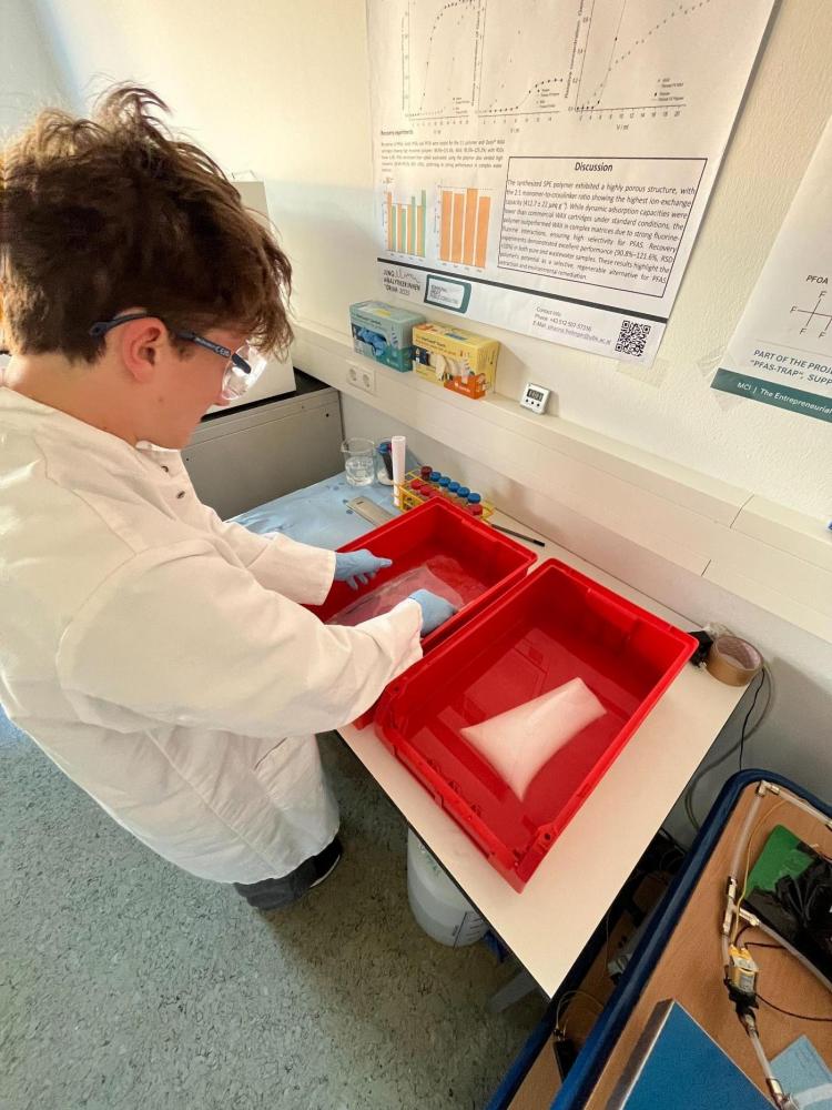 Nach der Präsentation ging es für uns in ein Labor, wo wir selbst aktiv werden durften. Dort stellten wir eigene kleine Membranen her und testeten sie anschließend an verschiedenen Wasserproben. Es war beeindruckend zu sehen, wie viel Technik und Präzision hinter etwas scheinbar Einfachem steckt. Insgesamt war der Besuch am MCI nicht nur informativ, sondern auch richtig spannend. Wir nahmen viele neue Eindrücke und Wissen mit nach Hause.