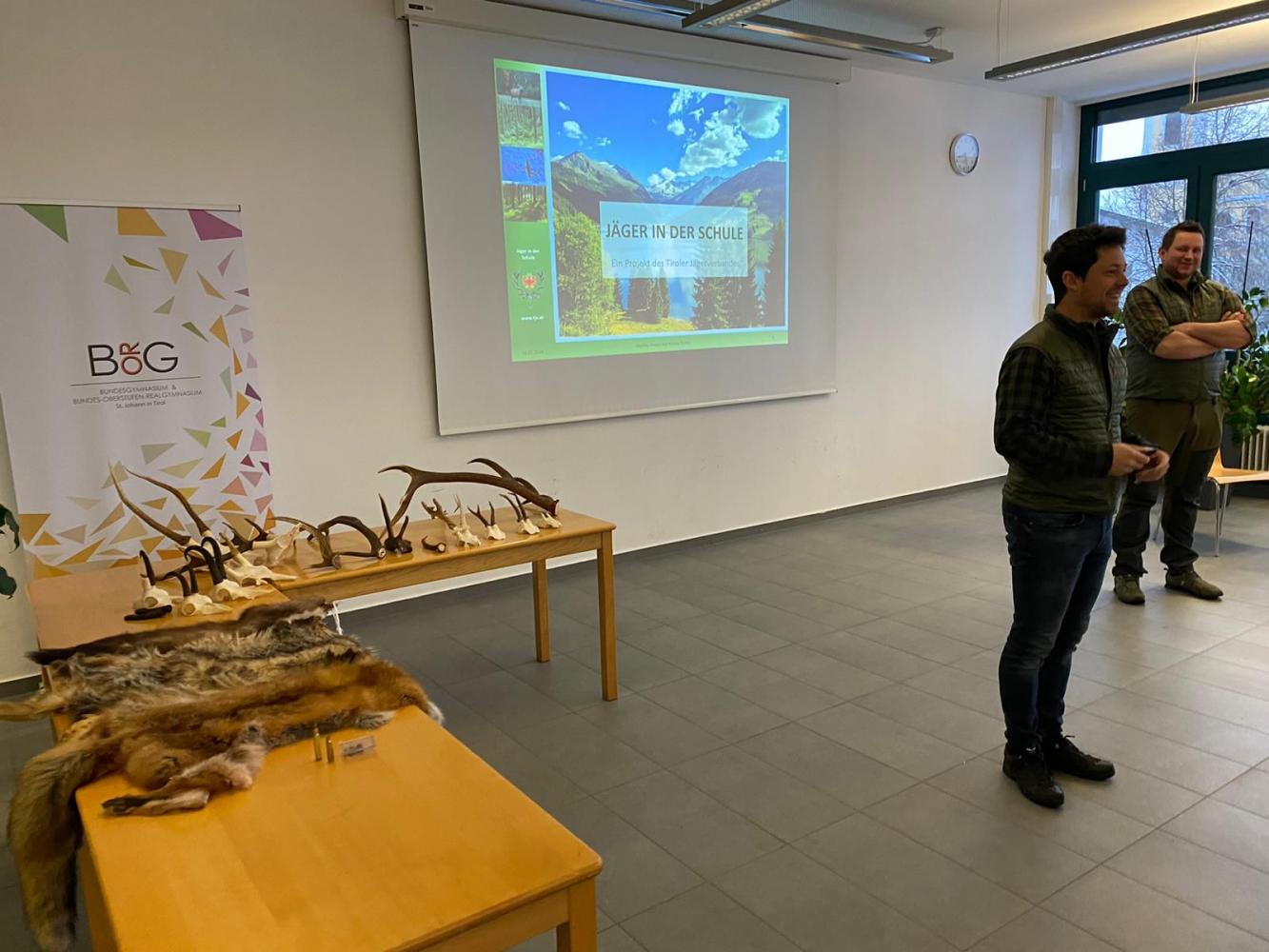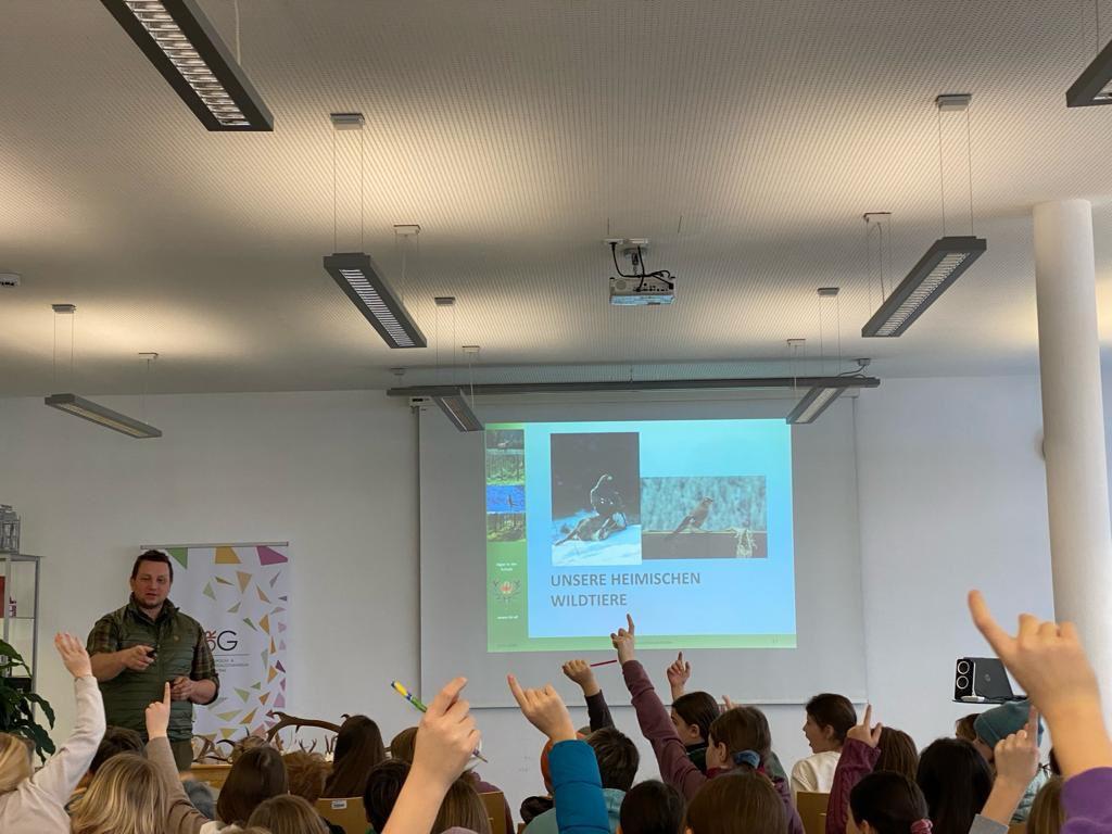 Seit vielen Jahren bekommen wir alljährlich im Januar Besuch von der Tiroler Jägerschaft, die unseren Schülerinnen und Schülern aus den ersten Klassen in einem 2-stündigem Workshop die vielfältigen Aufgabenbereiche der Förster und Jäger vorstellen.