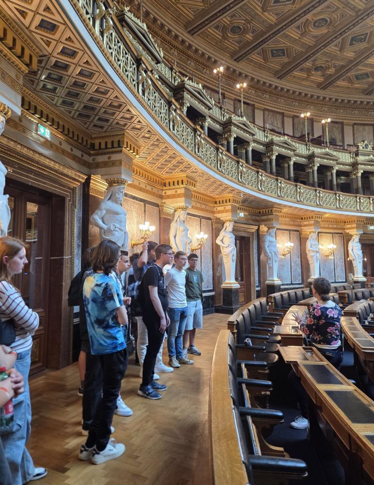 Im Laufe der ganzen Woche hatten wir immer ein sehr abwechslungsreiches Programm. Vom Musical „Rock me Amadeus“ über das Leben von Falco, bis zu verschiedenen Museen war für jeden etwas dabei. Gleich am ersten Tag nahmen wir an einer Hochspannungsvorführung im Technischen Museum Wien teil. Ebenfalls besonders spannend fanden wir das Heeresgeschichtliche Museum, da wir dort sehr viele originale Ausstellungsstücke aus der Nähe betrachten konnten. Ein weiteres Highlight war der Besuch im Parlament. Wir bekamen die Möglichkeit, einmal hinter die Kulissen zu blicken und im Sitzungssaal Platz zu nehmen. Wir konnten sehr viel Neues über die Geschichte unserer Republik lernen und was es heißt eine Demokratie zu sein.